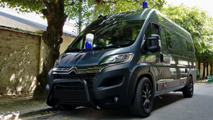 Non, j’y crois pas !! Mon JJ en plein essayage de gyrophare. Je vois, Monsieur compte galoper plus vite que son ombre. Va falloir demander à Total s’ils ont rajouté un additif à base de marijuana dans le gas-oil, j’ai peur de voir l’aiguille du compte-tours grimper en zone rouge.