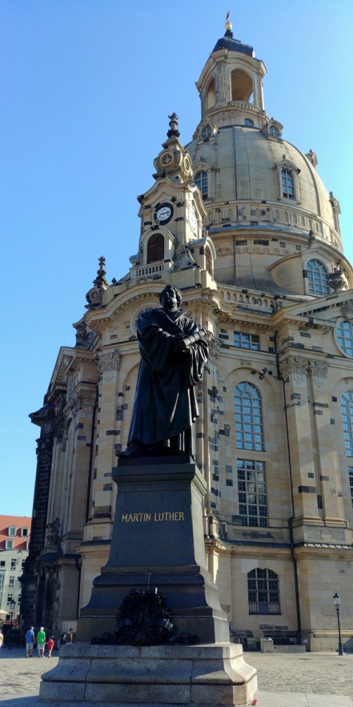 L’église Notre-Dame (Dresdner Frauenkirche) symbole du luthéranisme. La coupole et l’intérieur sont impressionnants par leur beauté.