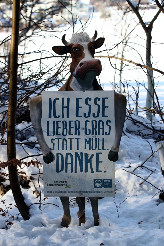 On ne badine pas avec la condition animale, traduction : « Je préfère manger de l’herbe plutôt que des déchets, merci ». Vache qui rit, vache qui pleure… Vache qui rit jaune.