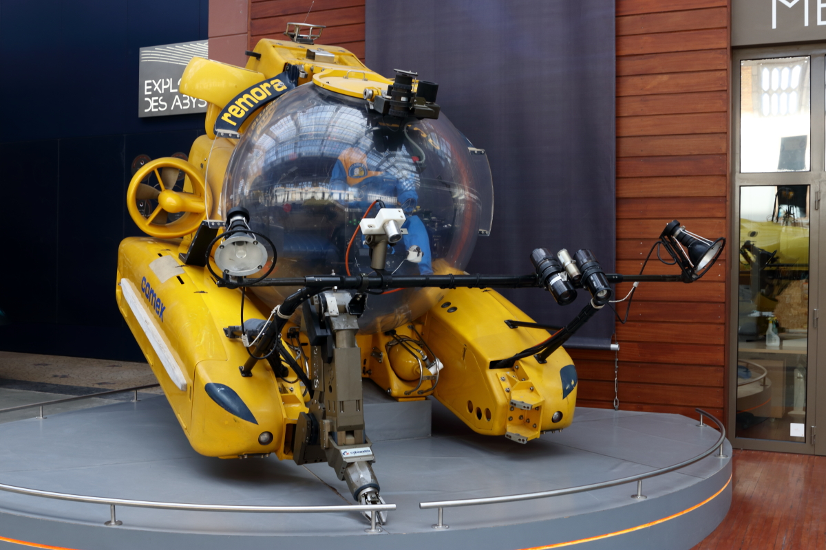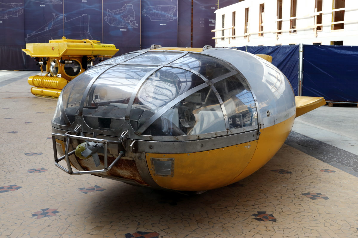 Dès le départ, nous sommes plongés dans l’ivresse des profondeurs et ce sentiment va perdurer durant presque toute la visite. Des engins en tout genre ont permis la découverte des océans dont le réalisateur de film James Cameron établira un record avec Deepsea Challenger à 10 898 m de profondeur, de forme verticale pour une descente plus rapide (photo 5).