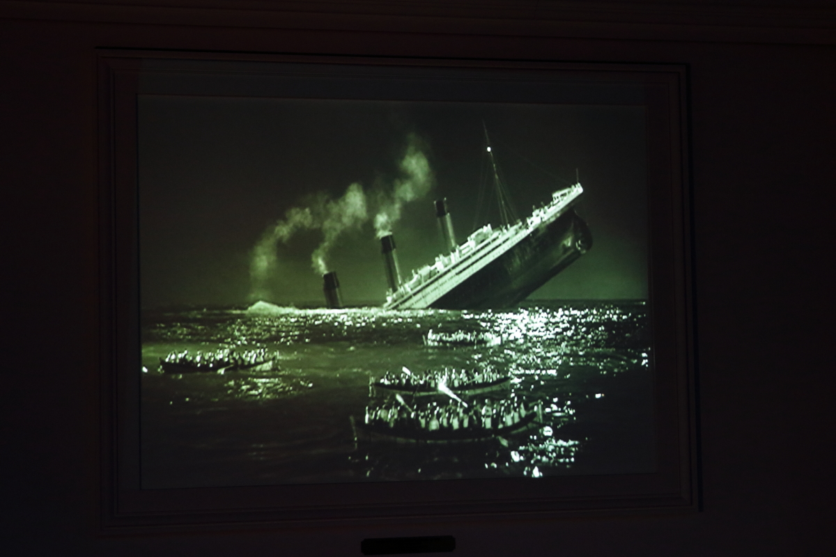 Une reconstitution du naufrage du Titanic est mise en scène. Dans cette tragédie, on comprend mieux l’incidence de la fonte progressive d’un iceberg. En se décomposant, il génère des arêtes de plus en plus vives, pénétrant ainsi la coque d’un navire comme une lame de couteau. Durant son parcours, il arrive qu’il se retourne sur lui-même.