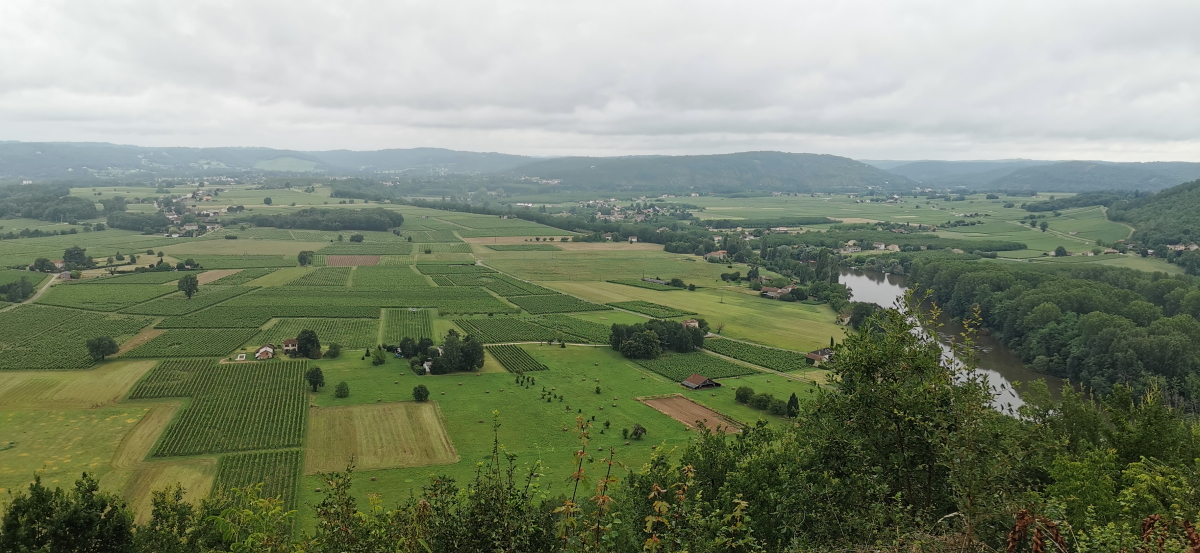 Pause déjeuner sur les hauteurs de Bélaye avec son panorama sur le vignoble de Cahors.