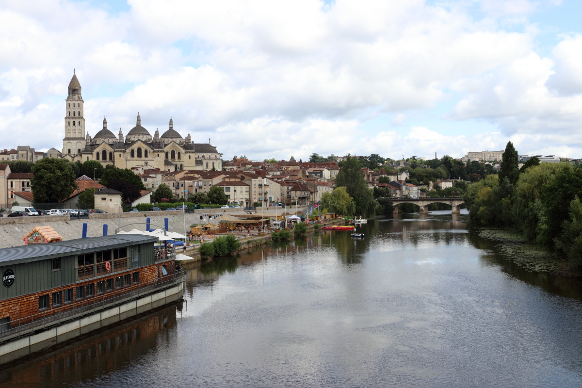 La Cathédrale Saint-Front est la première chose qui saute aux yeux lorsqu’on pénètre dans Périgueux. De style roman byzantin, elle est classée au Patrimoine mondial. Sa particularité, on y accède par plusieurs portes et son autel est au centre. Ses dômes et son clocher soulignent son élégance architecturale.