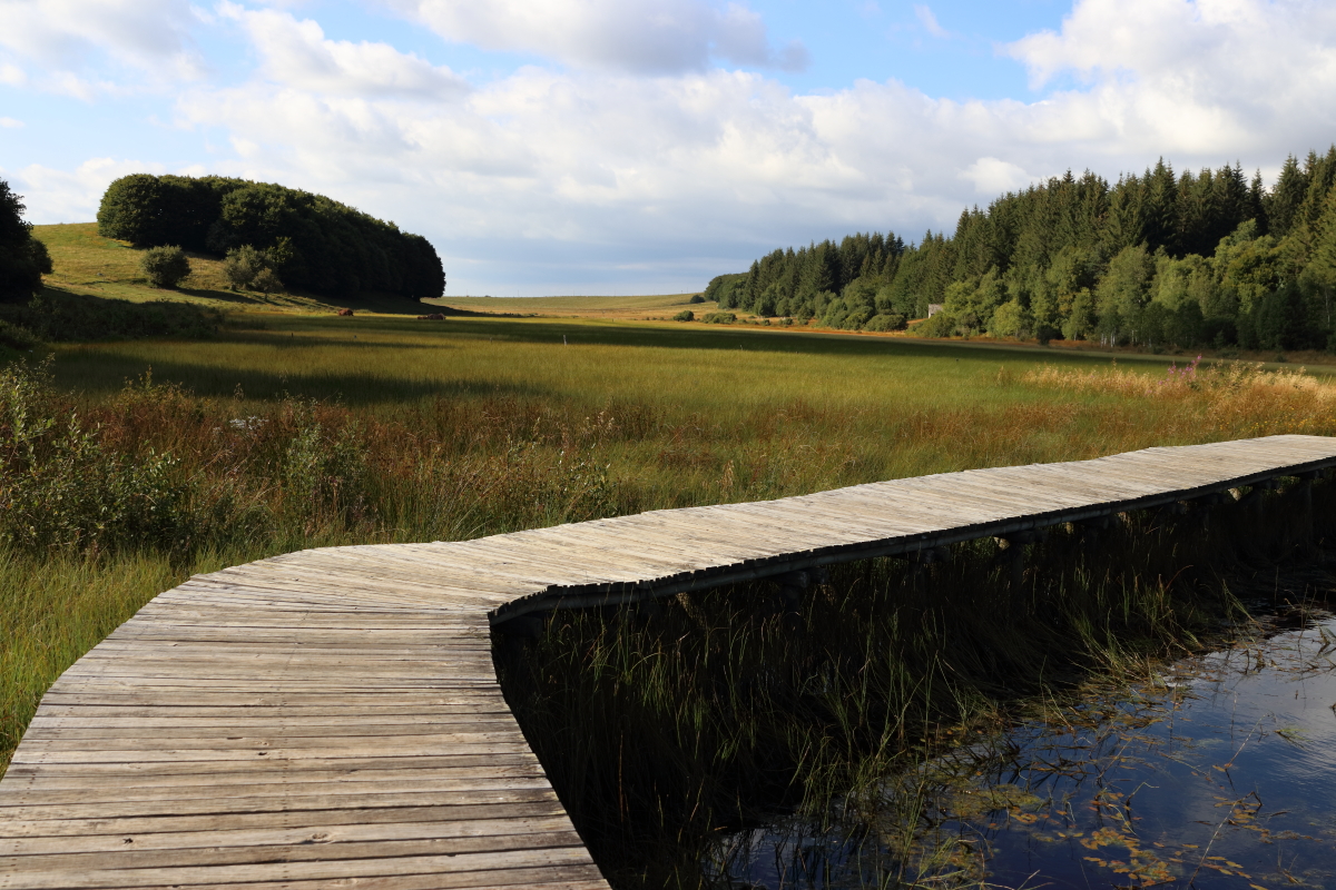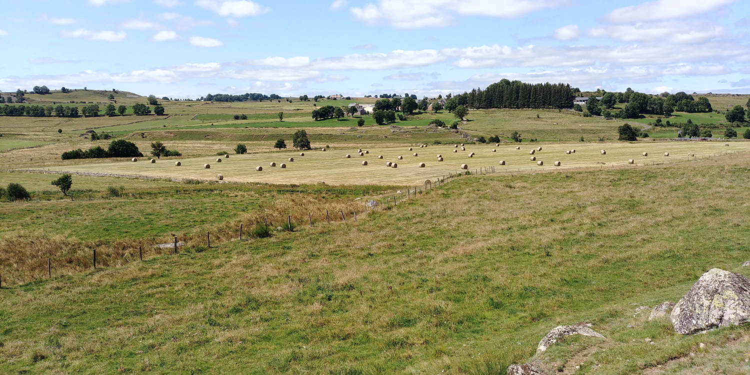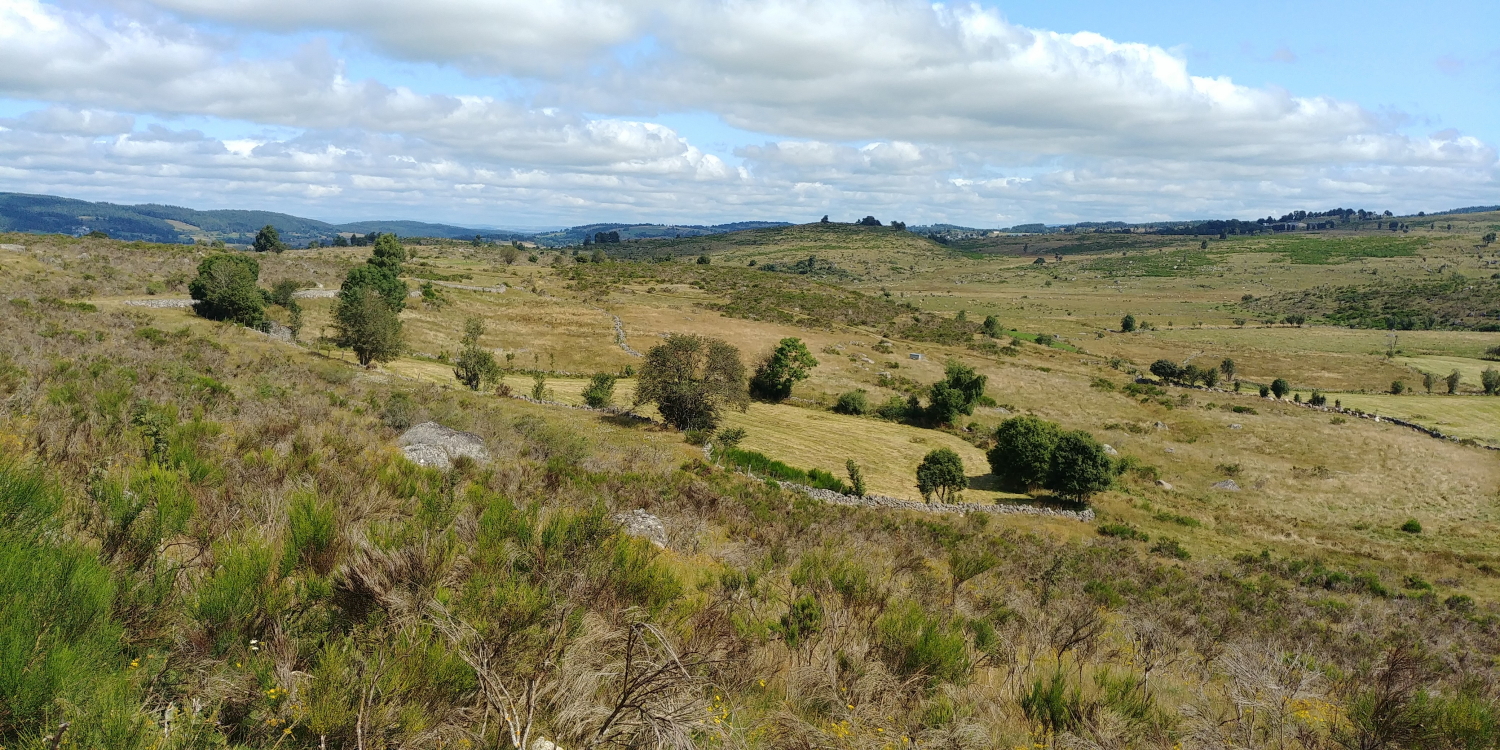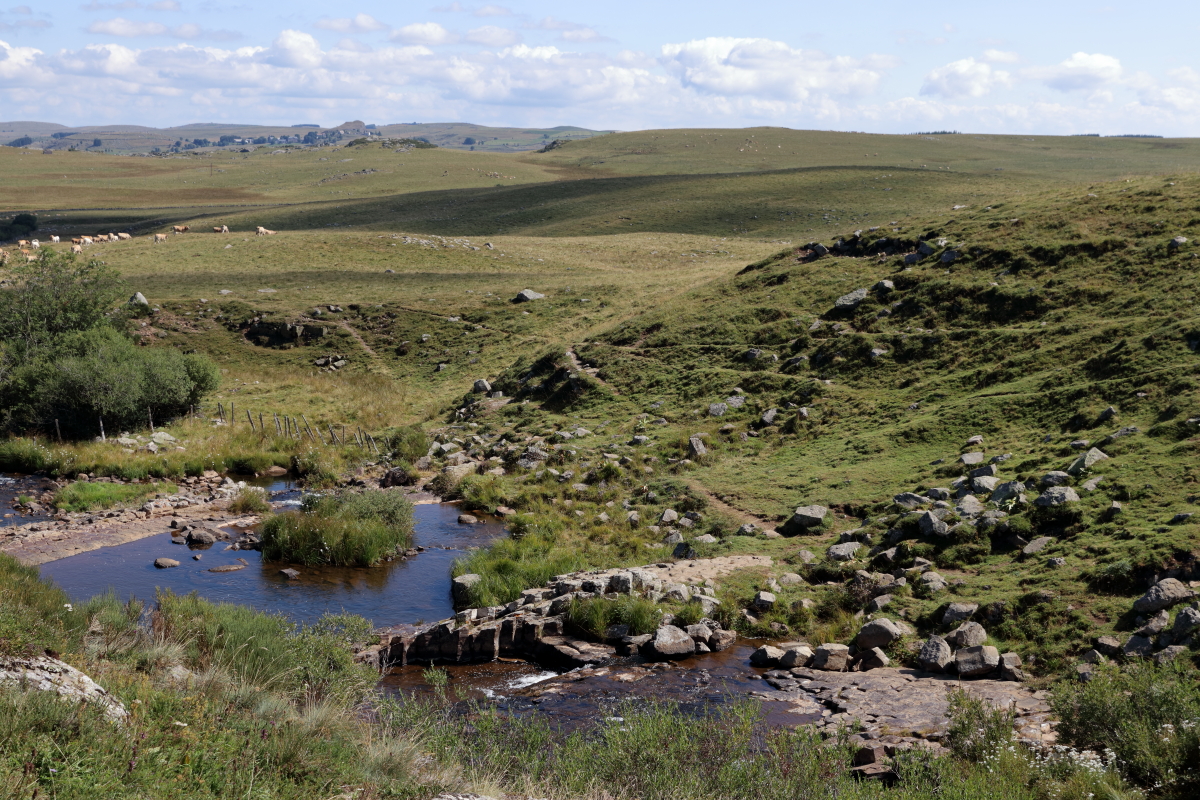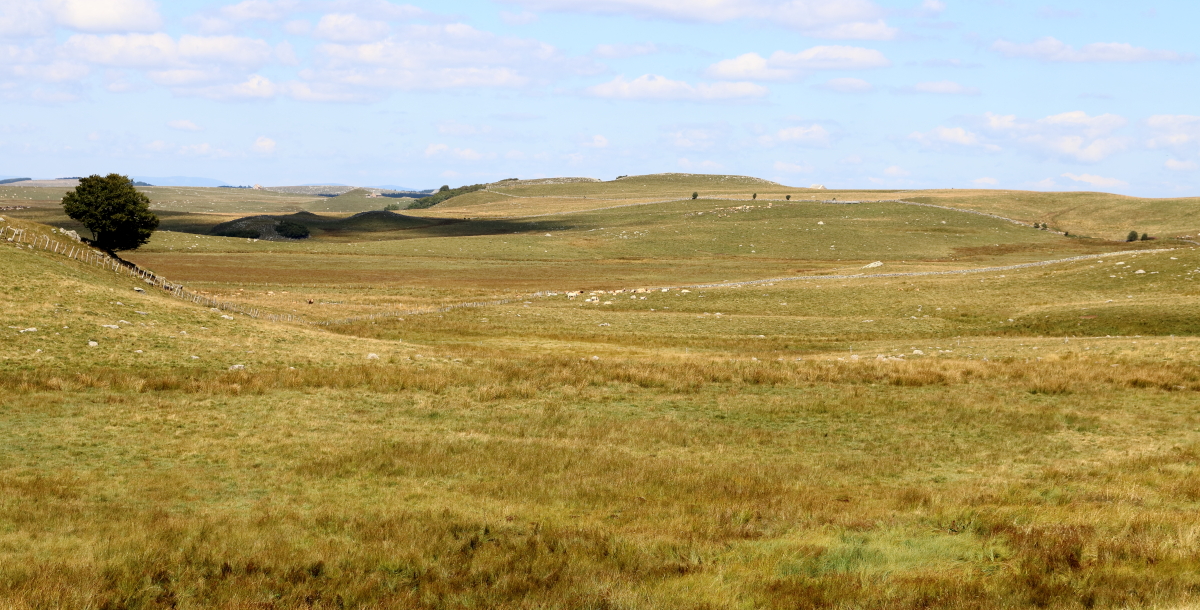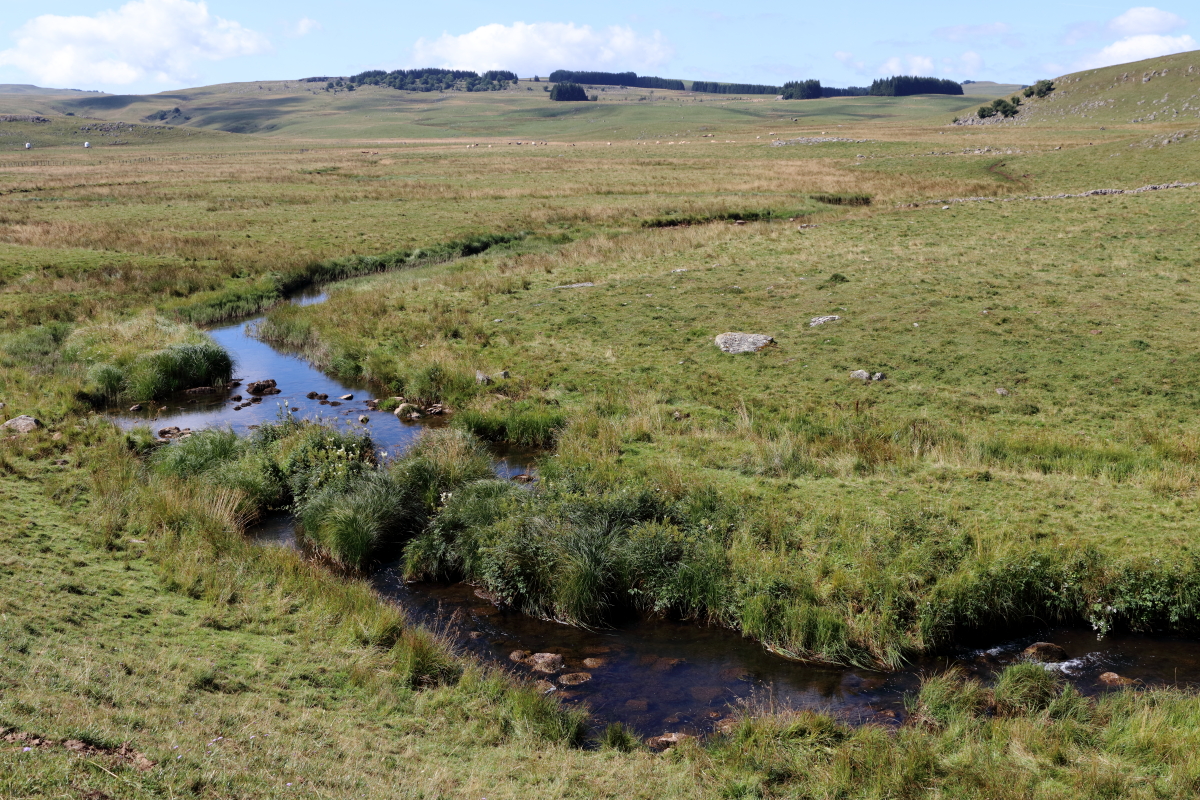 Des paysages de pâturages et de prairies dessinent ce magnifique plateau que constitue l’Aubrac. De nombreuses résurgences facilitent l’autonomie des troupeaux. Le grand air incite à l’évasion : ce jour-là, on a avalé 12 km de rando en élargissant le parcours de Grandvals.