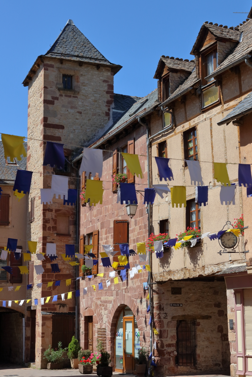 La tour de l’horloge affiche le blason de la Canourgue, fleur de Lys et lévrier des Canilhac. Une légende sur Ermangarde et ses deux lévriers, épouse de Montaigut, y fait allusion. Geoffroy de Montaigut qui cherchait à se débarrasser de son épouse pour s’emparer de sa fortune fut mis en pièces par ces chiens.