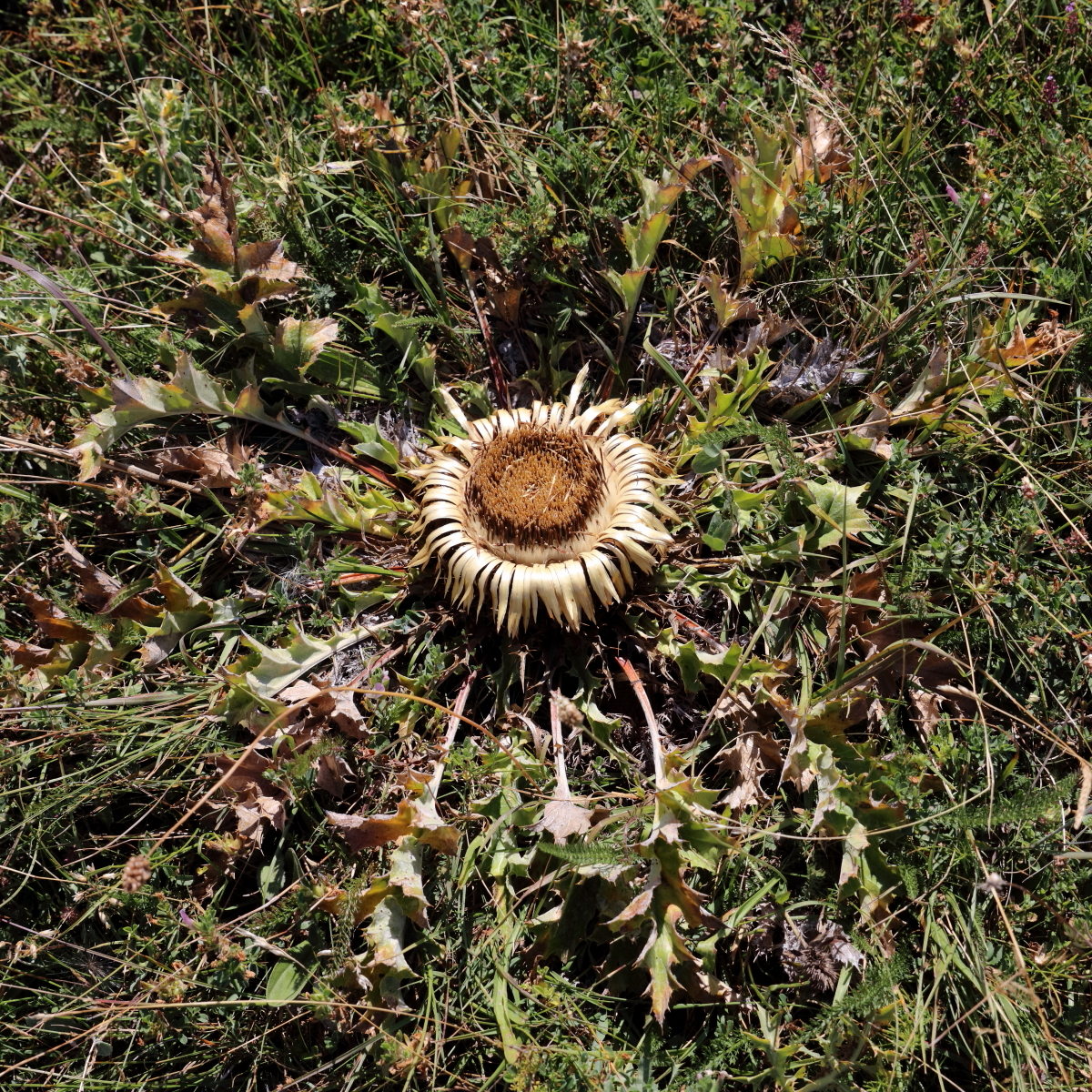 J’en avais parlé dans mon article n° 93, on a pu la découvrir au naturel, la Cardabelle ou Carline à feuilles d’acanthe. En bonus, à proximité, l’araignée Argiope.