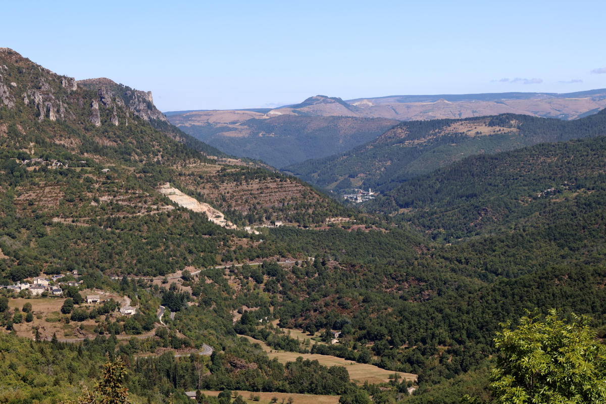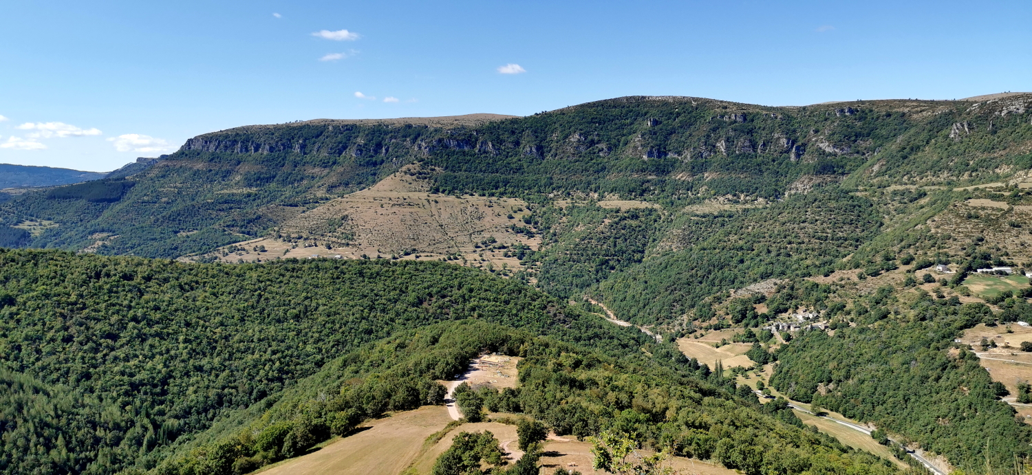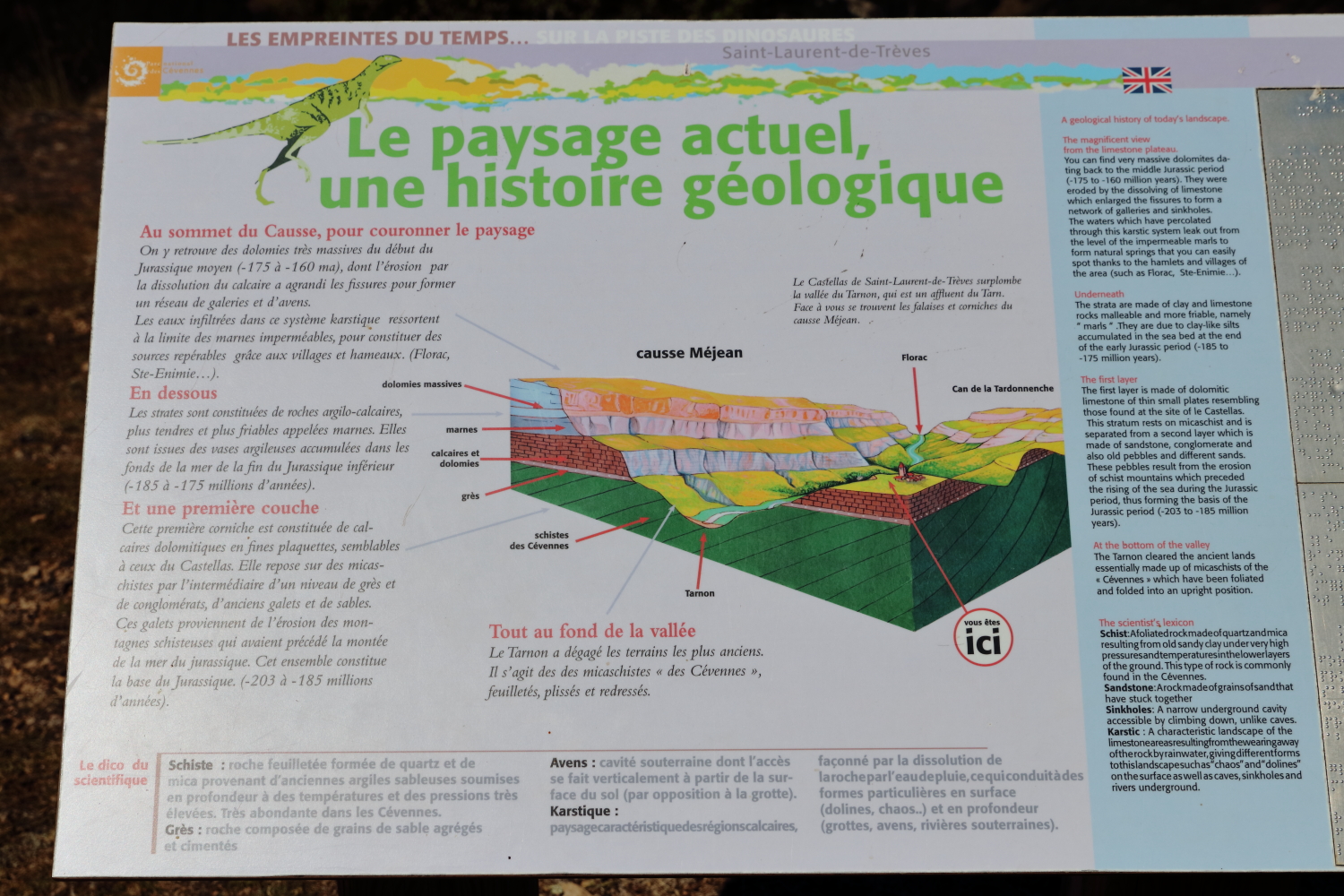JJ entame sa grimpette sur la Corniche des Cévennes sur les traces de digitigrades, les redoutables théropodes carnivores de Saint-Laurent-de-Trèves. Ce lieu expose une vue panoramique sur le causse Méjean et le mont Lozère (1699 m).