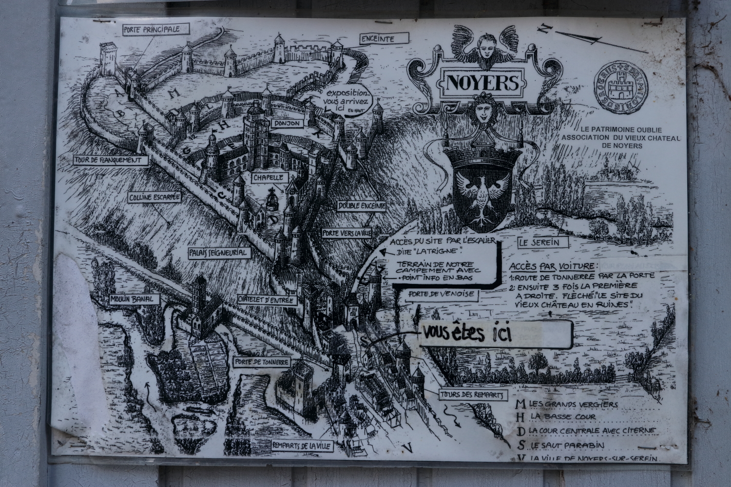 Impressionnant par ses détails et par sa conservation, le village de Noyers-sur-Serein affiche une authenticité exceptionnelle. Aujourd’hui, son palais seigneurial a quasiment disparu sous la végétation, il fut démantelé par Henri IV à la suite des guerres de religion. Cette cité tire son nom des forêts de noyer avoisinantes.