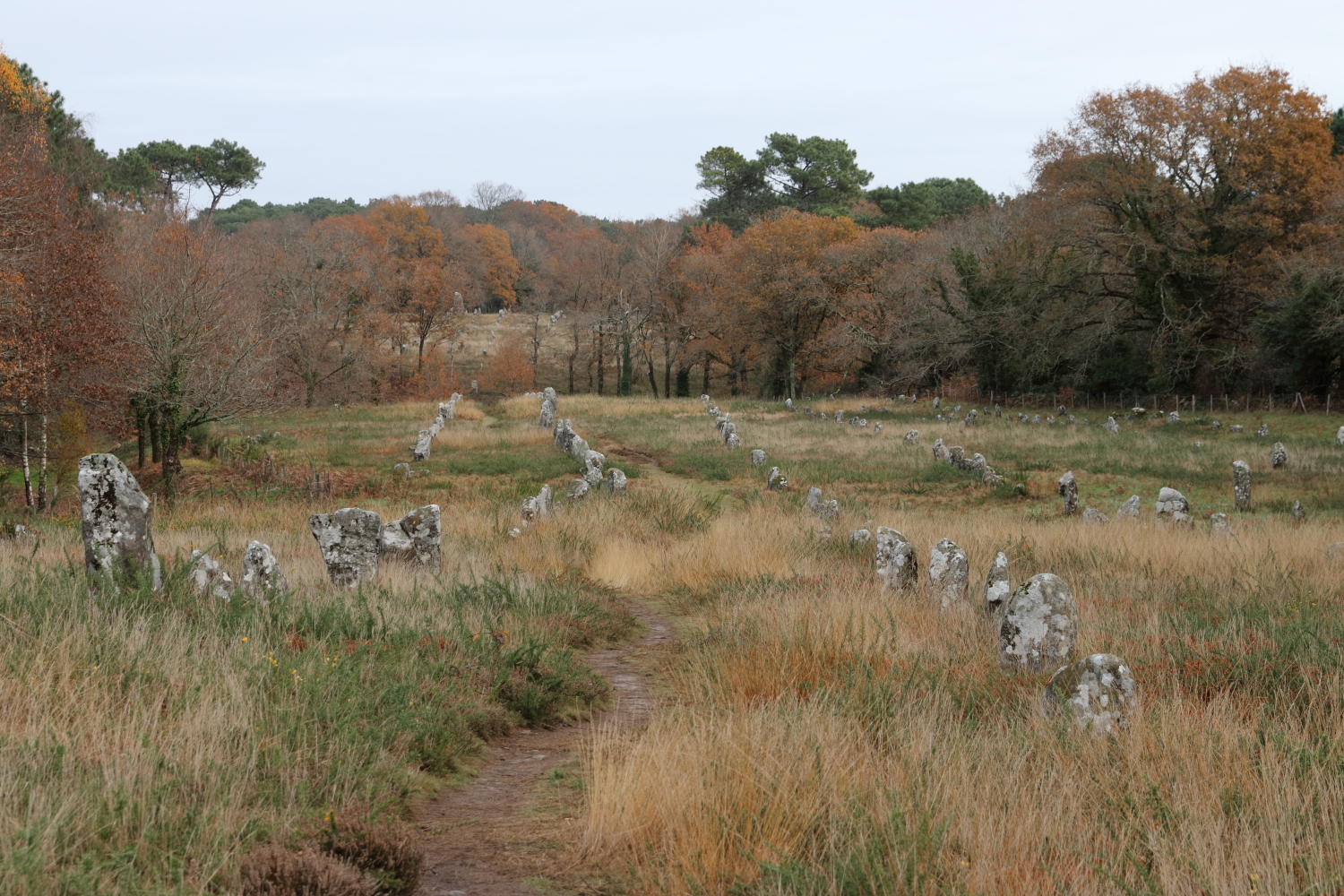 Sur la rive opposée, après en avoir fait le tour, nous visitons le site de Locmariaquer et les alignements de Kermario. Sur près de 4 km s’étalent des blocs de pierres dressés depuis 6000 ans. Ce peuple du Néolithique a parsemé la région de quelques 3000 menhirs. De ce passé préhistorique, ça reste la plus grande étendue au monde.