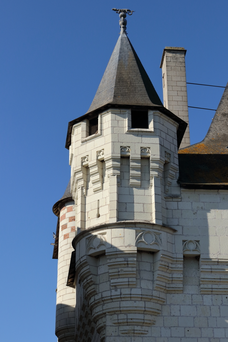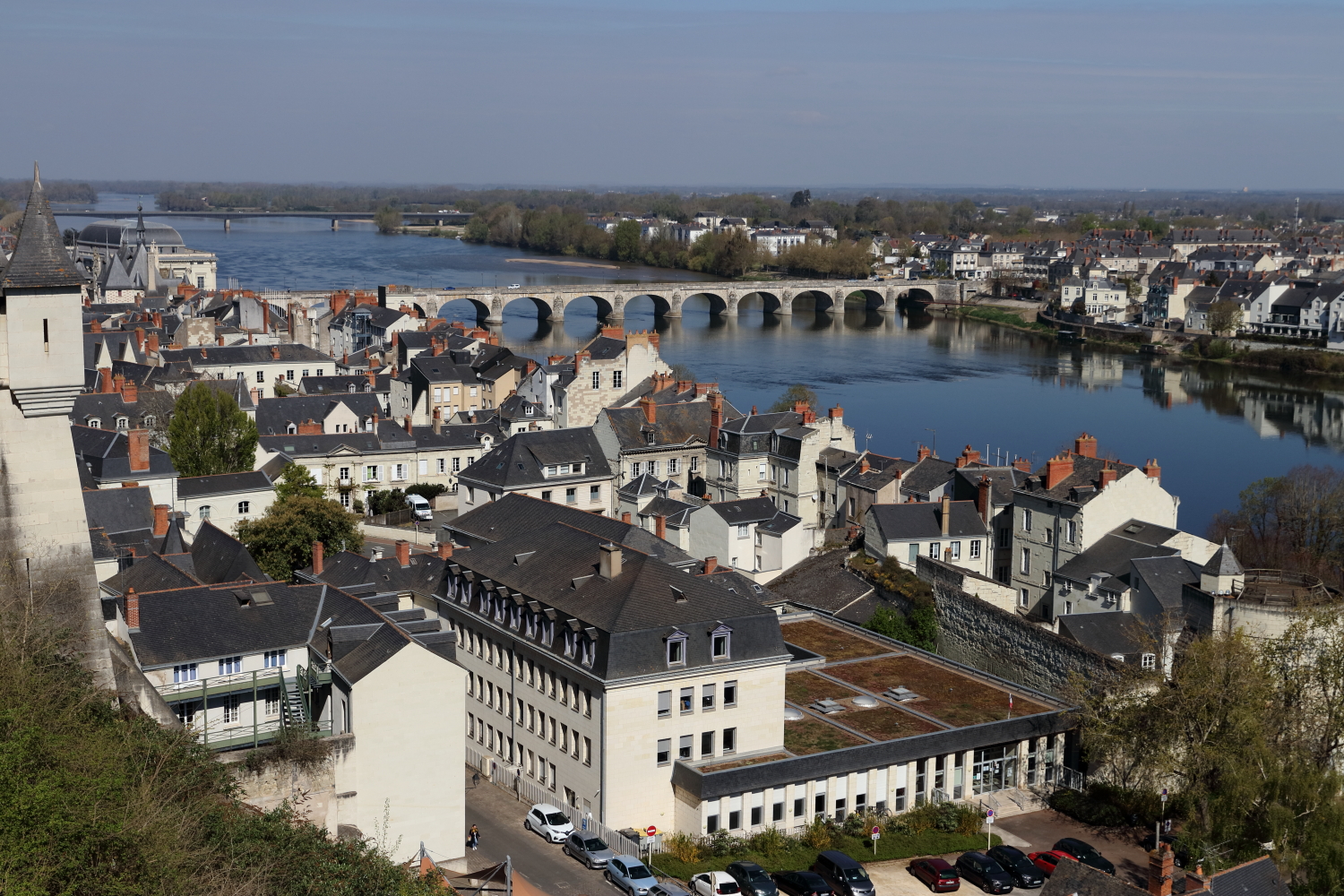 Avant de pénétrer en Maine-et-Loire, nous marquons un petit arrêt sur la commune de Candes-Saint-Martin. Son château était en cours de rénovation, mais nous avons profité sur les hauteurs de la ville du panorama de la confluence de la Loire et de la Vienne. Son église collégiale a des airs de forteresse, une des rares en Touraine avec un style architectural militaire.