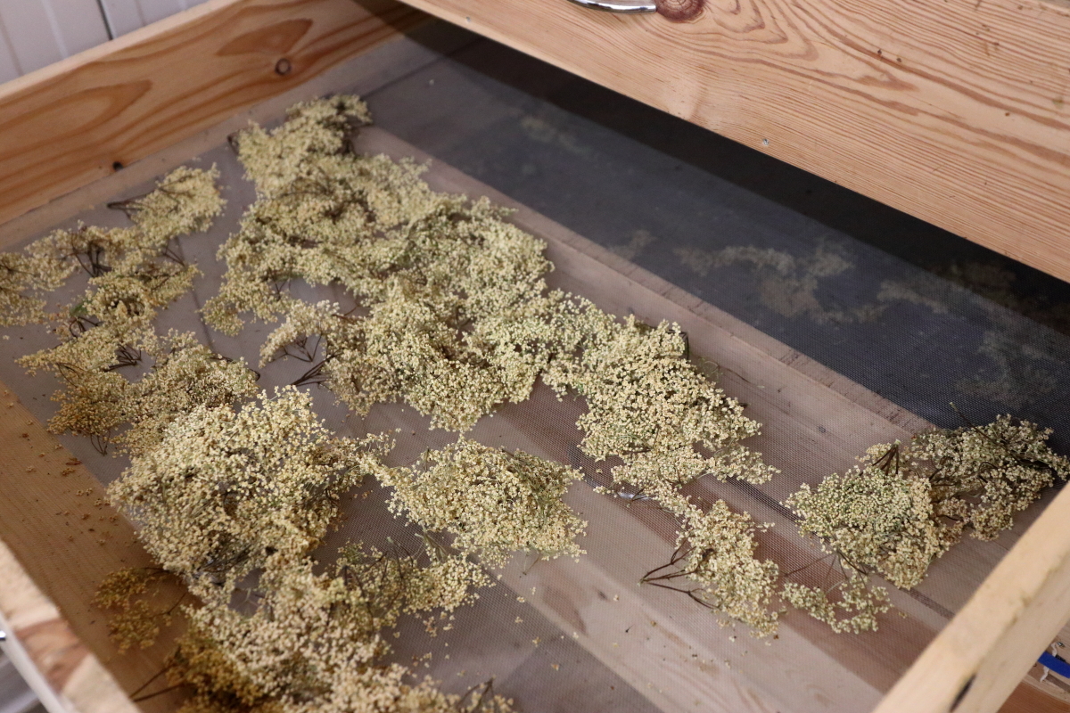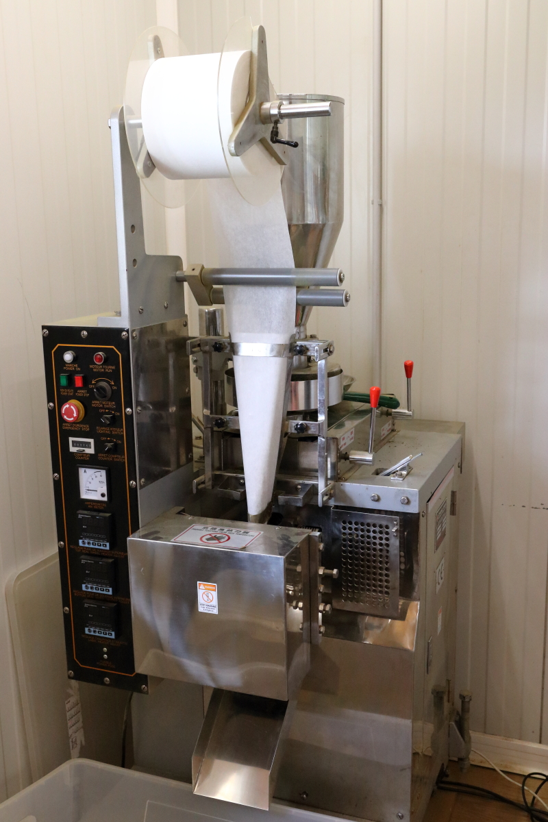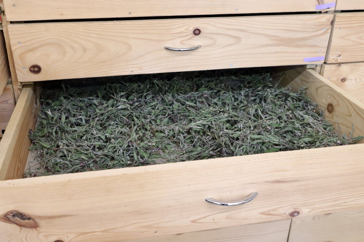 Le processus débute avec un séchoir sur claies équipé d’un ventilateur et d’un déshumidificateur. Les plantes restent dans le noir complet pour conserver leurs propriétés. Après broyage et tamisage, une ensacheuse conditionne les sachets filtres.