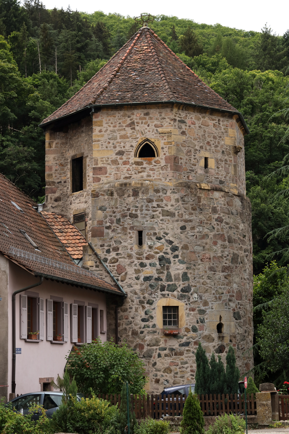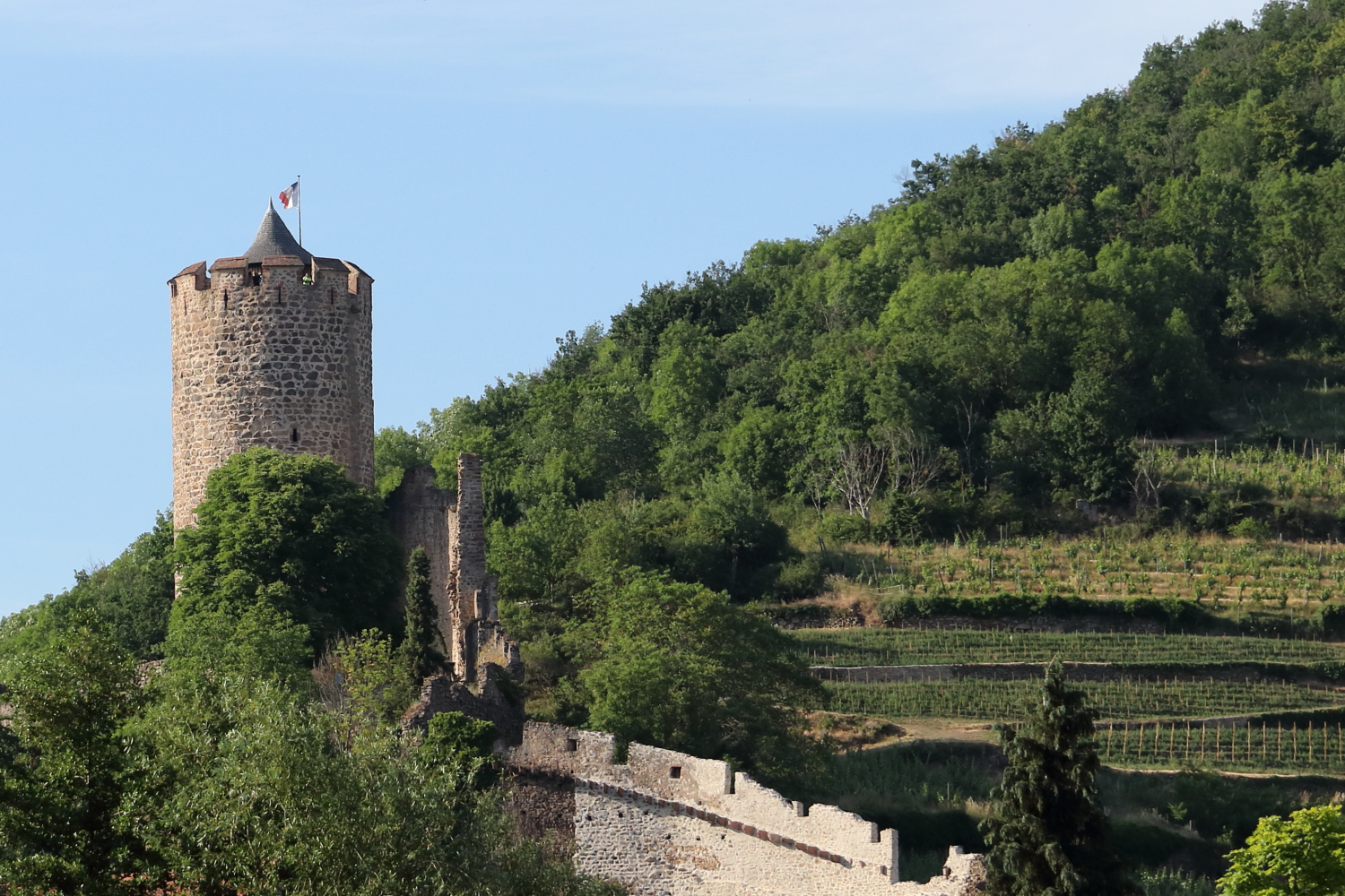 Ribeauvillé, le seigneur Ribeaupierre a fait construire trois châteaux forts sur les collines avoisinantes. La corporation des Bouchers devait défendre dans la tour qui porte son nom, la cité.