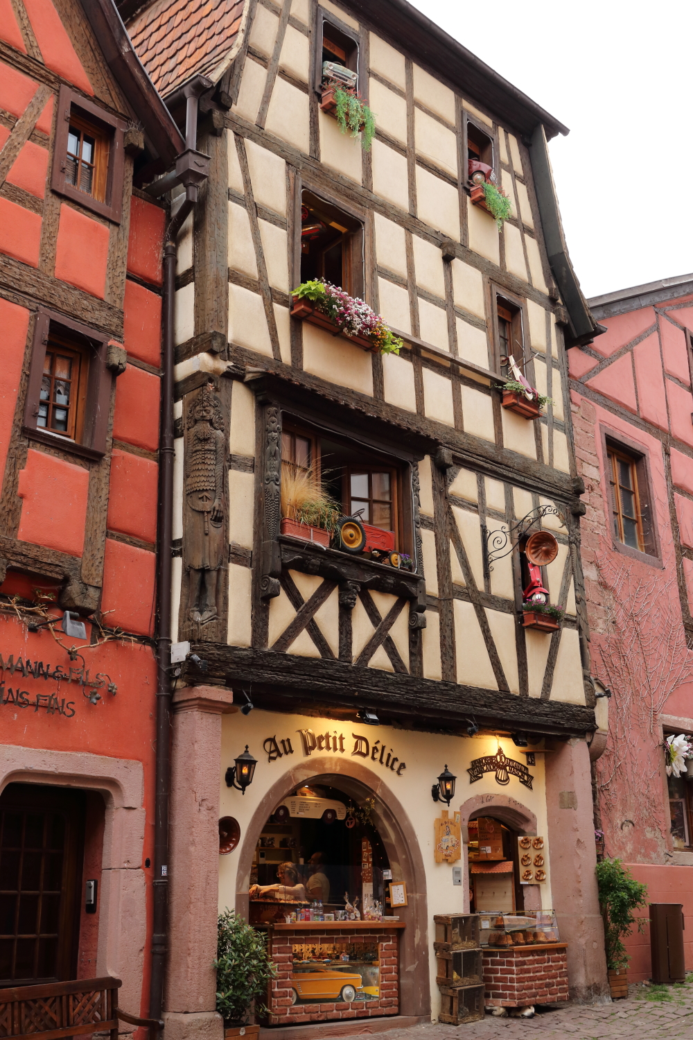 Riquewihr est un concentré du patrimoine médiéval très prisé du tourisme. La Tour des Voleurs est l’ancienne prison et la Tour du Dolder est une porte défensive. À examiner l’architecture des bâtis, plus on monte de niveaux, plus on gagne en surface. La maison bleue propose le meilleur outil régional.