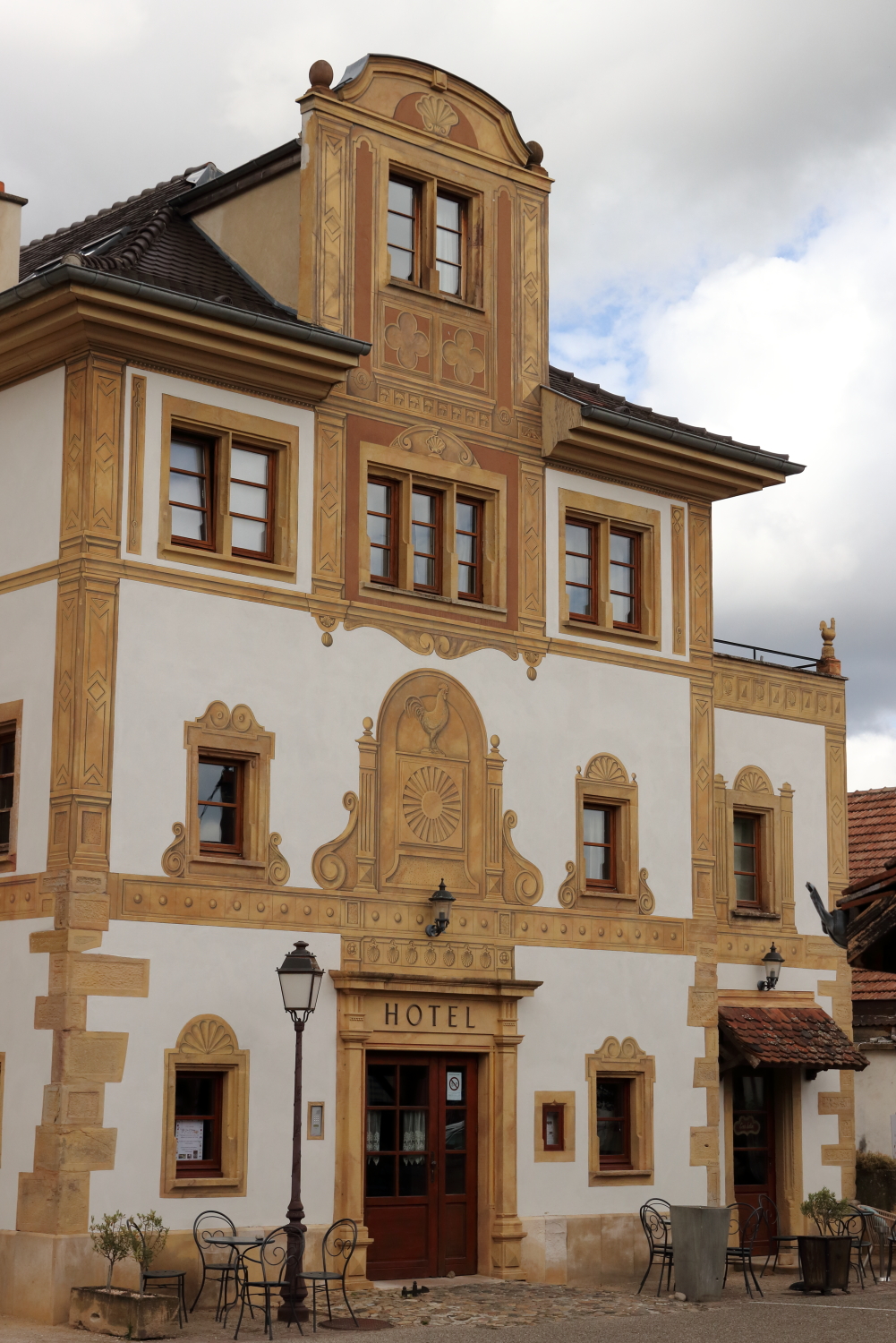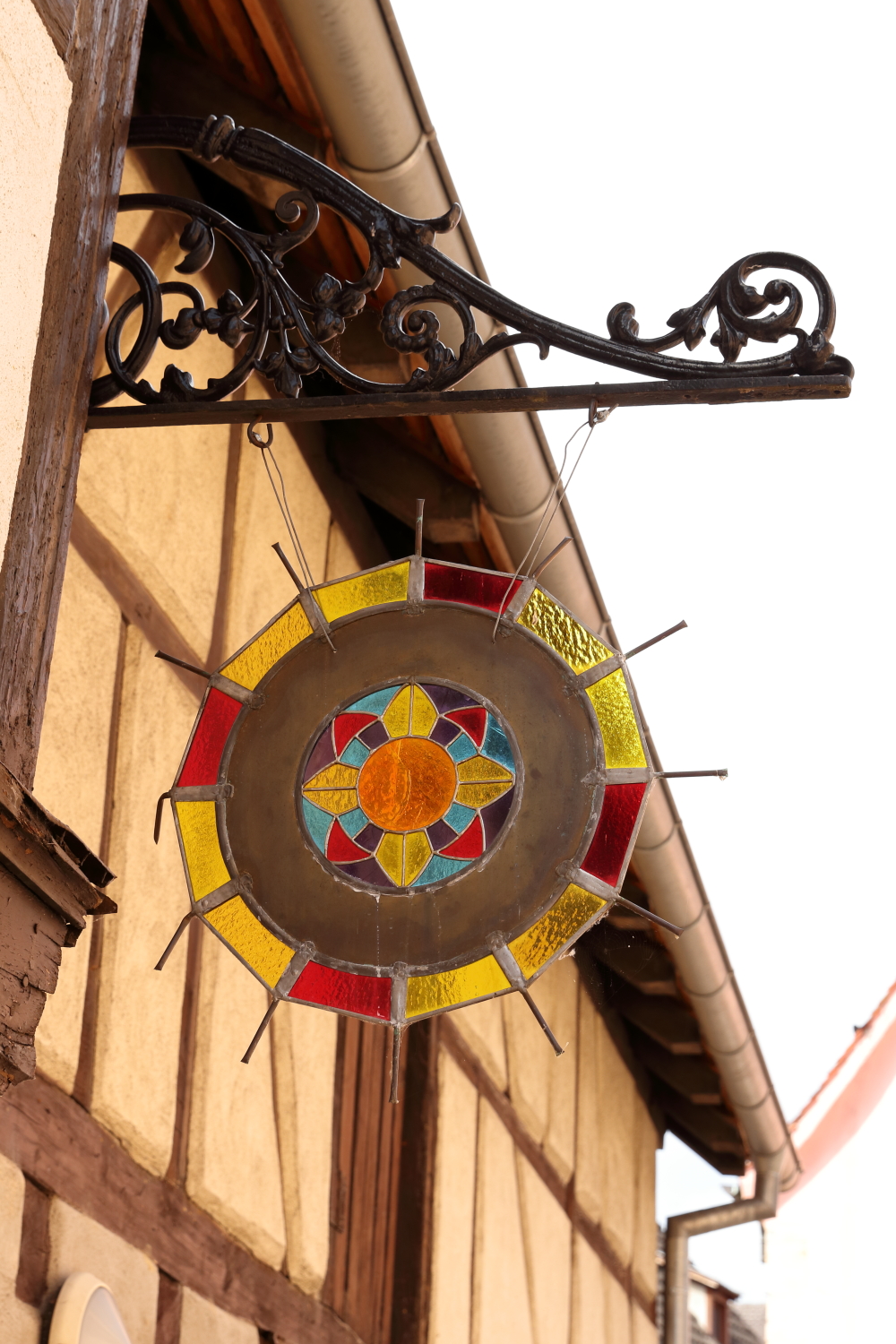 Gueberschwihr, de bien belles enseignes sur les façades et les portails.