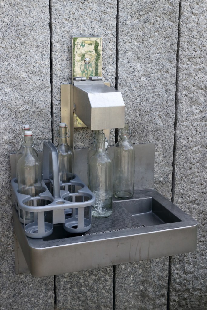 À Wattwiller, la nature est généreuse, elle offre une eau épargnée de tout nitrate. Afin de préserver la ressource, chaque habitant dispose d’un badge pour remplir ses bouteilles.