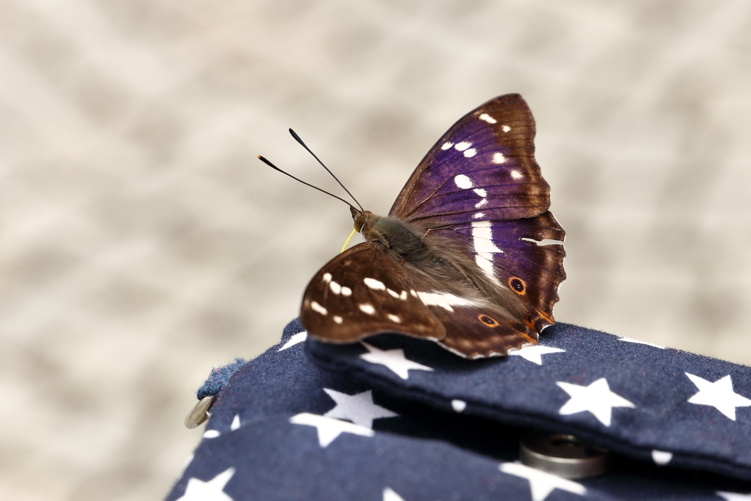 Posé sur le sac à main d’une dame, une belle surprise avec ce papillon dont j’ignorais sa particularité. En effet, ce Petit Mars changeant prend une coloration bleutée des ailes avec la polarisation de la lumière suivant son exposition de façon plus ou moins importante. Sa trompe est jaune fluorescent. Retour à Paris pour un anniversaire, JJ repart pour une cavalcade de 1100 km.