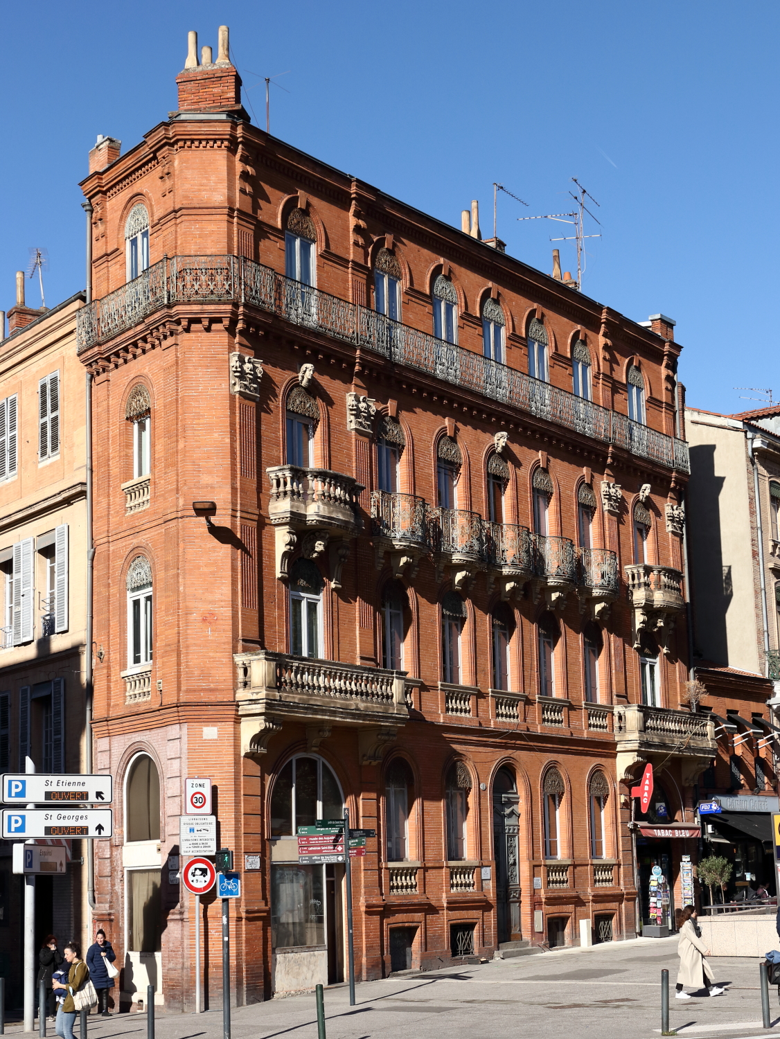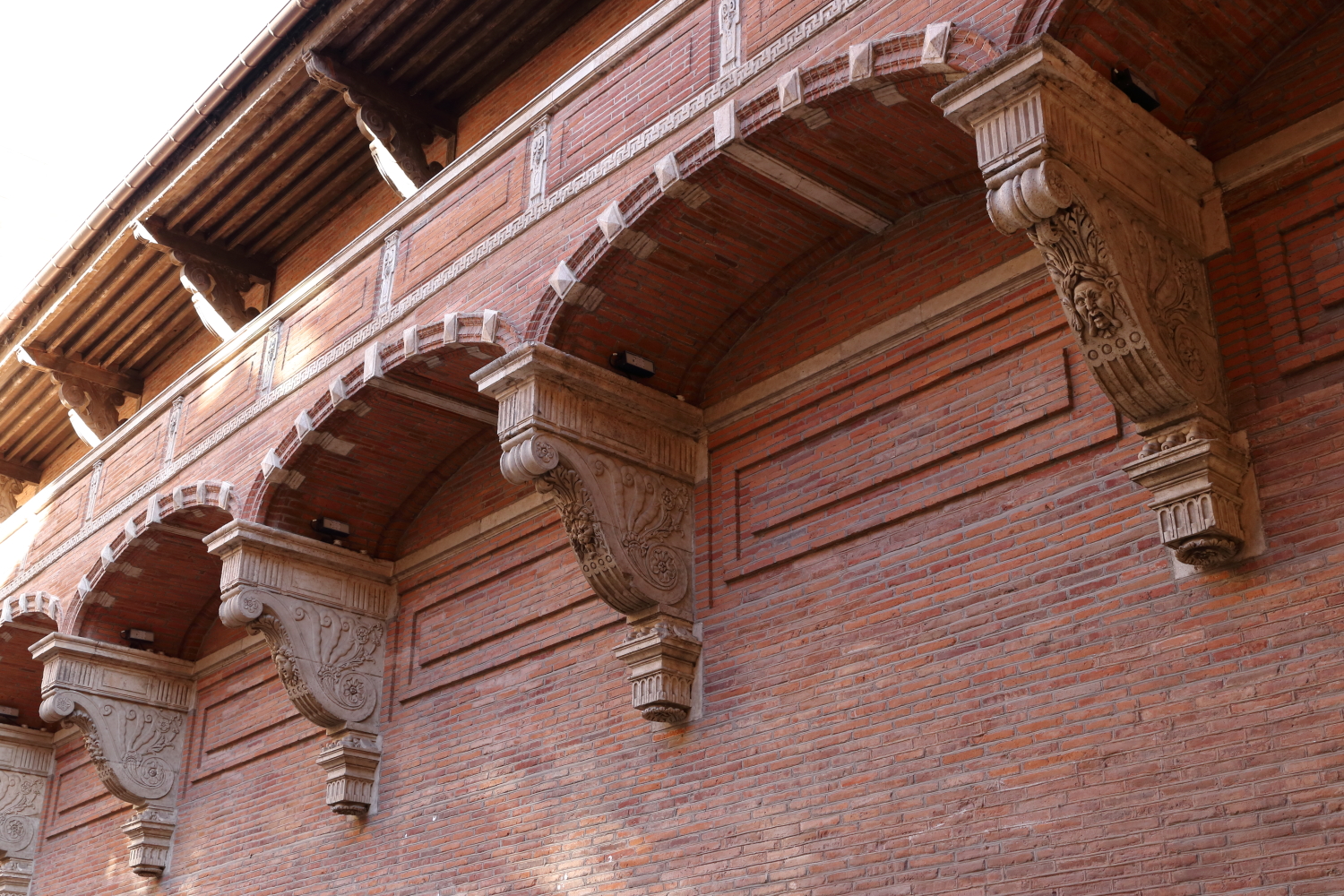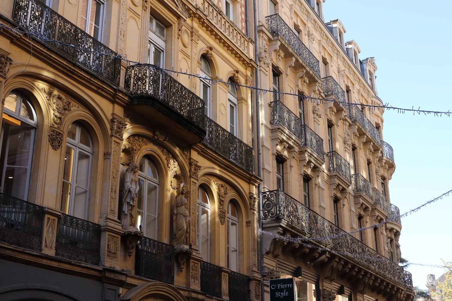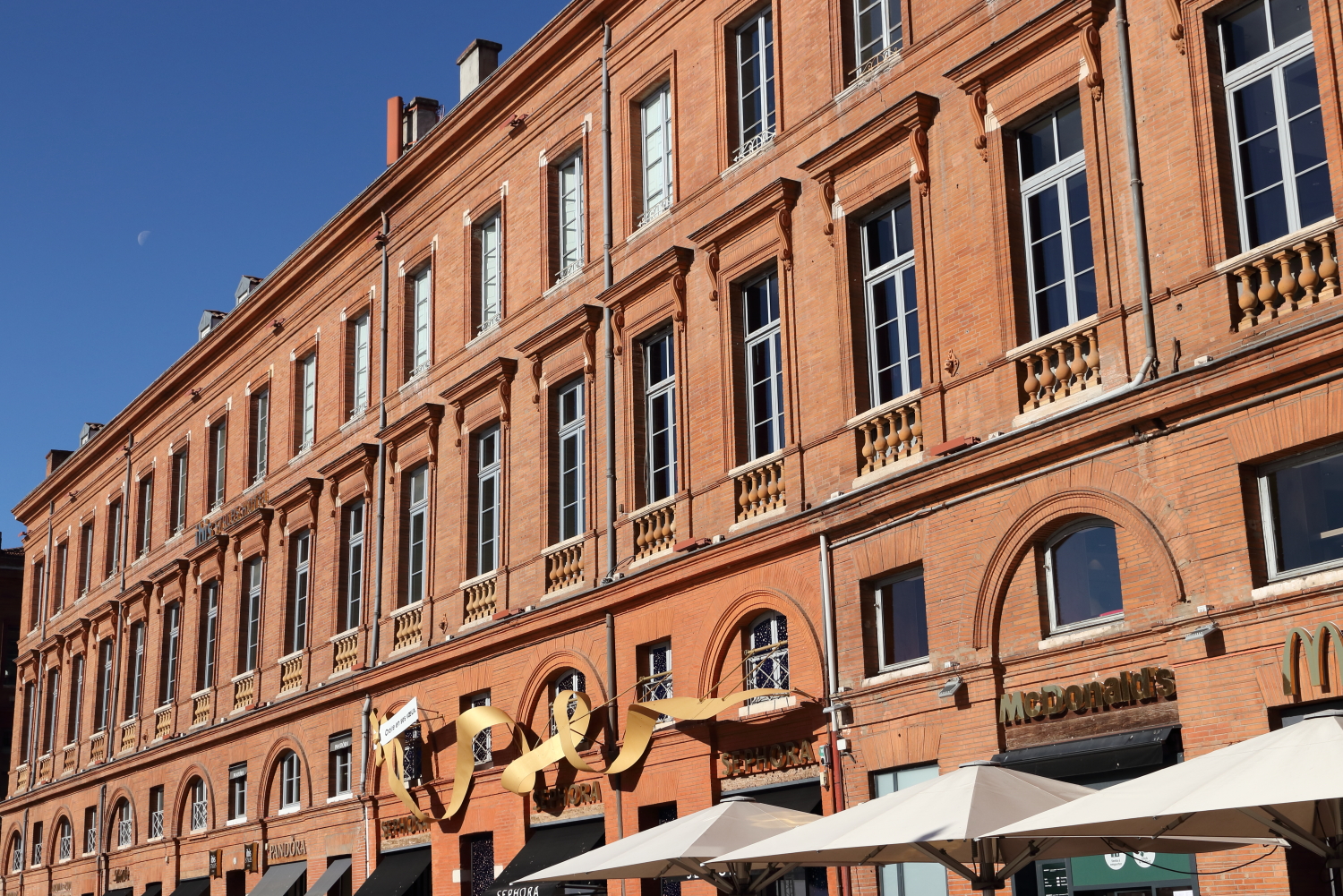 Avec les préparatifs du marché de Noël, impossible d’apprécier dans son ensemble la place du Capitole et encore moins d’en prendre des photos. Les façades sont remarquables dans leur diversité.