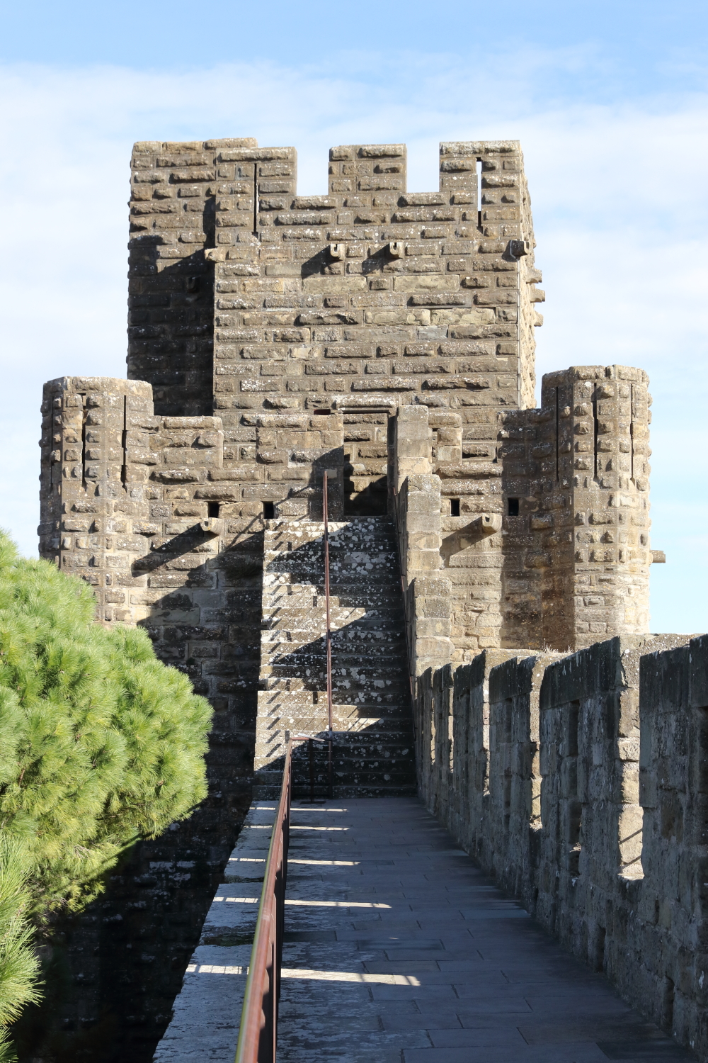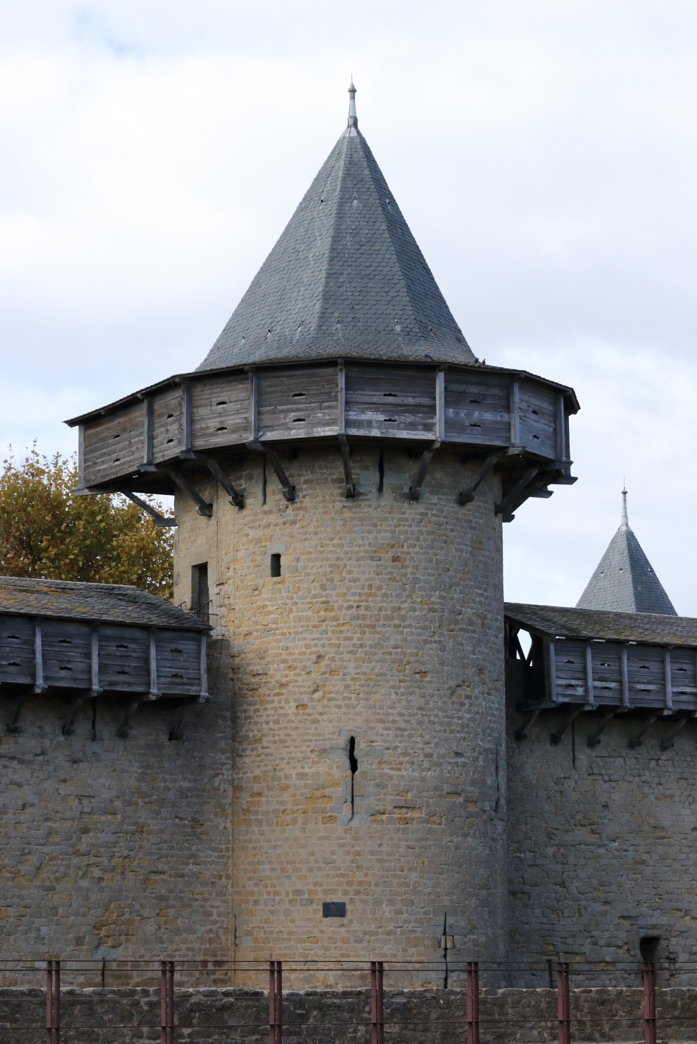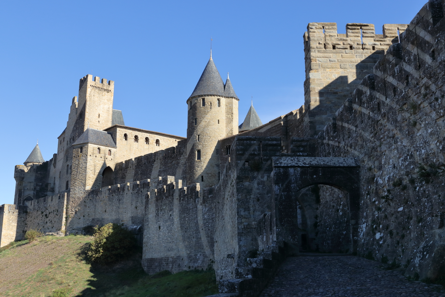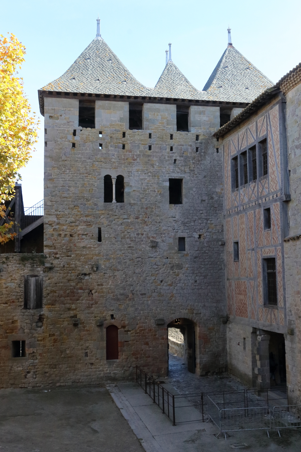 52 tours dont seulement 3 sont carrées. Viollet-le-Duc a mené la sauvegarde de la cité au XIXe siècle. Les stries sur les murs ne sont pas une illusion d’optique, mais une hérésie dont je préfère oublier le nom du réalisateur.