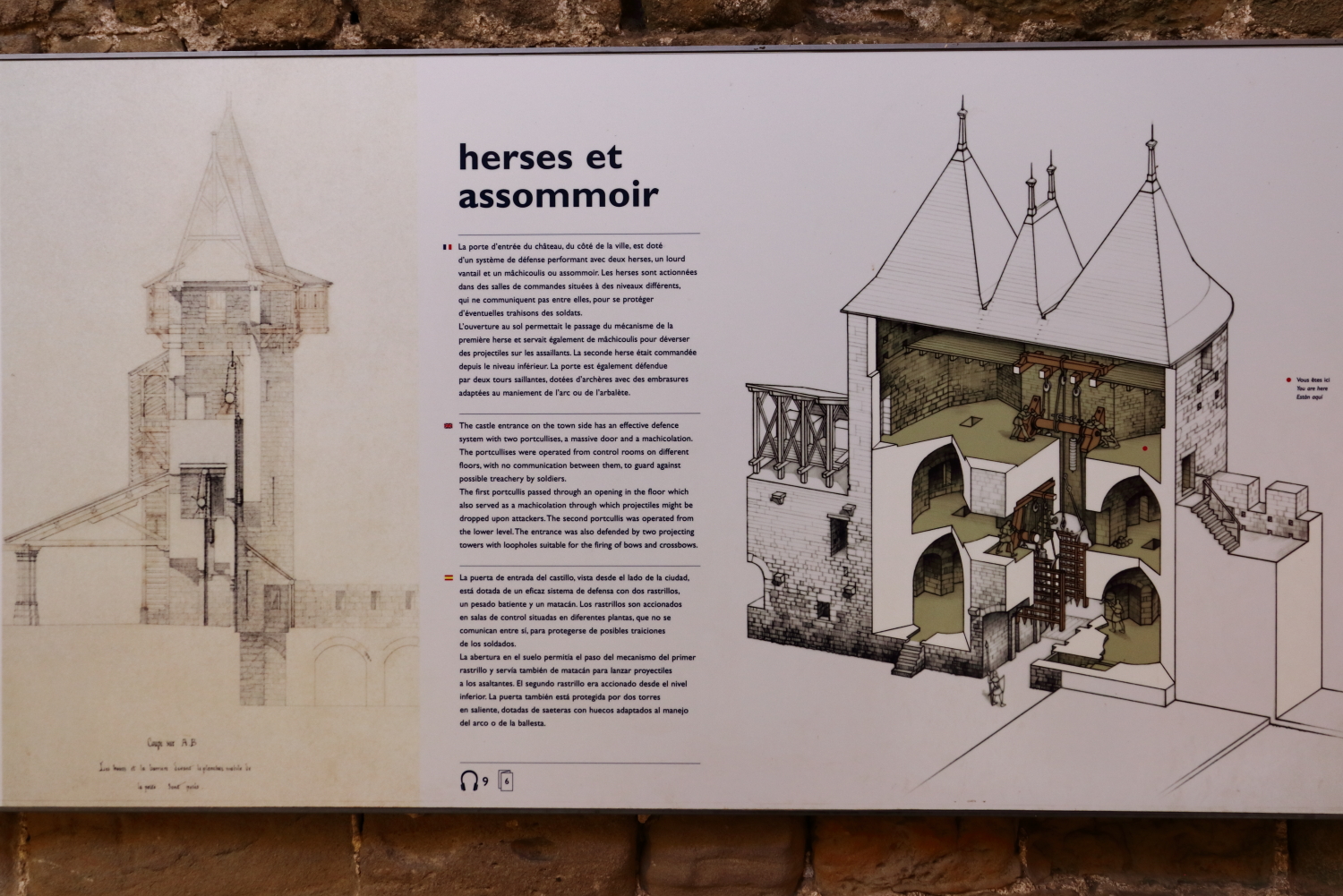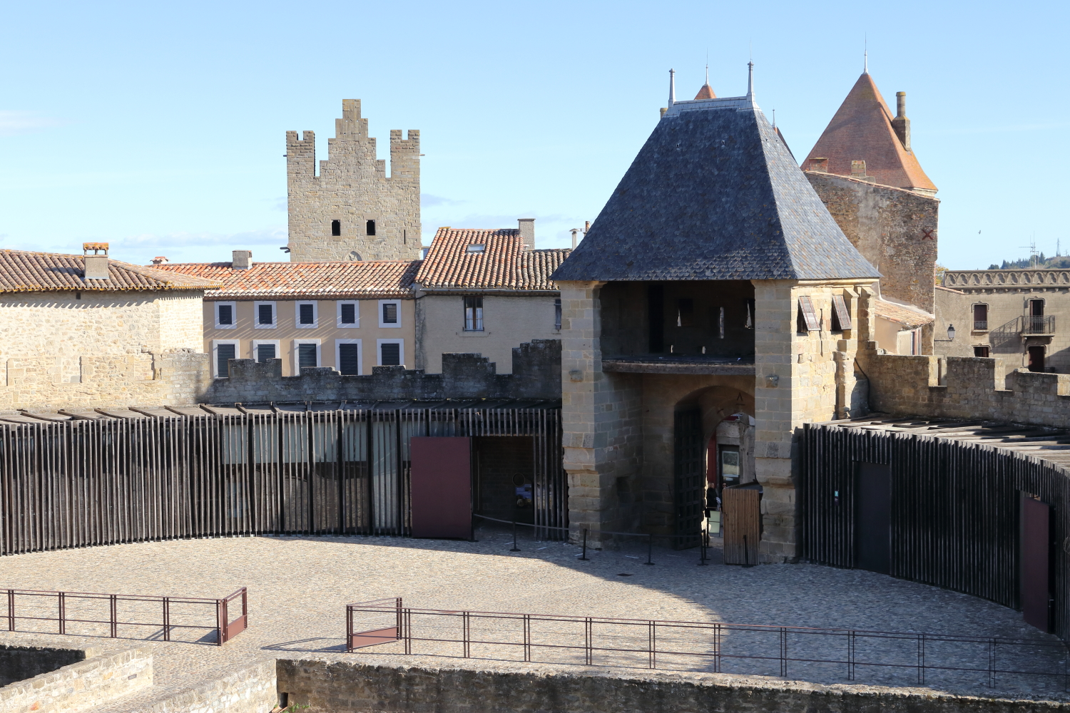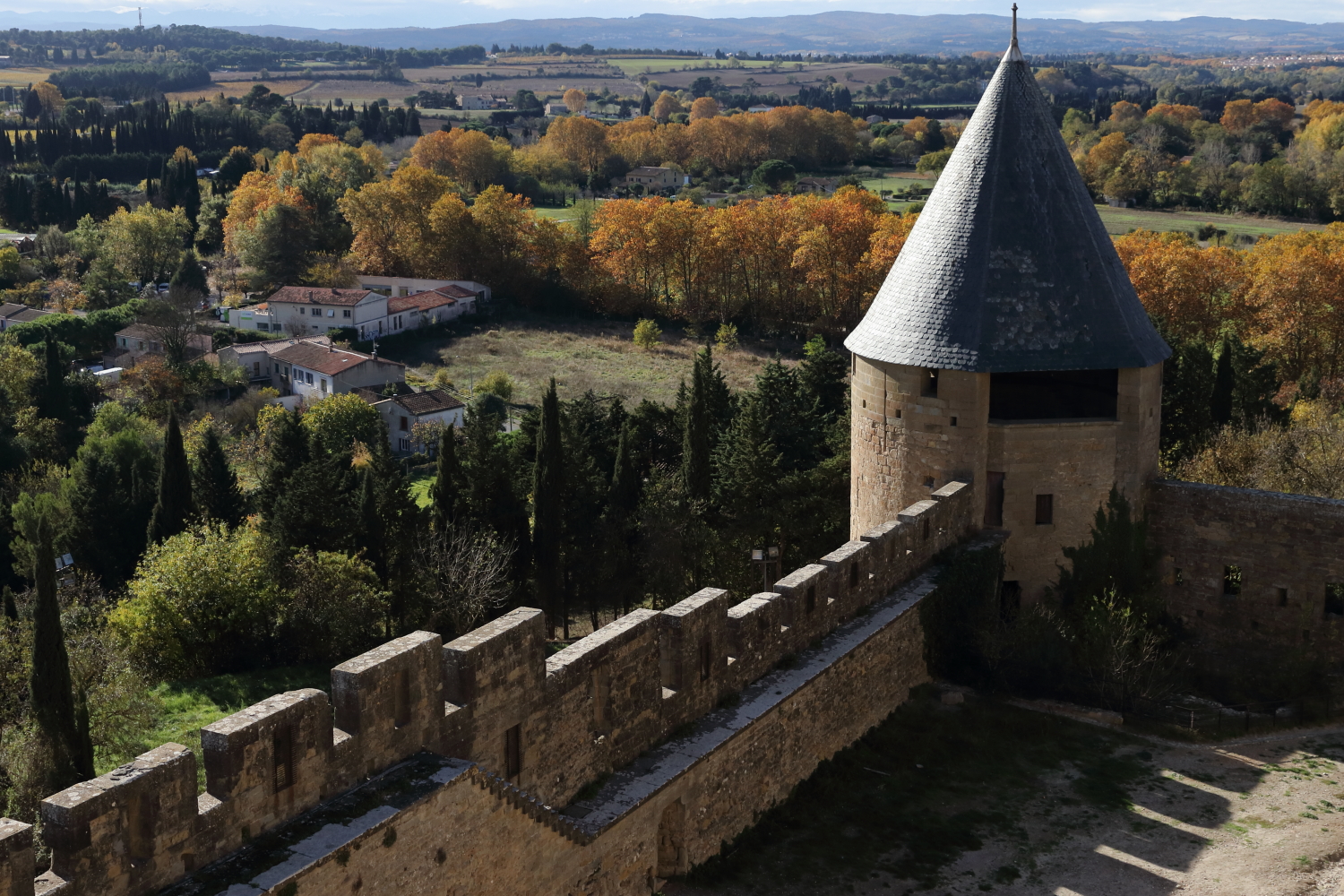 52 tours dont seulement 3 sont carrées. Viollet-le-Duc a mené la sauvegarde de la cité au XIXe siècle. Les stries sur les murs ne sont pas une illusion d’optique, mais une hérésie dont je préfère oublier le nom du réalisateur.
