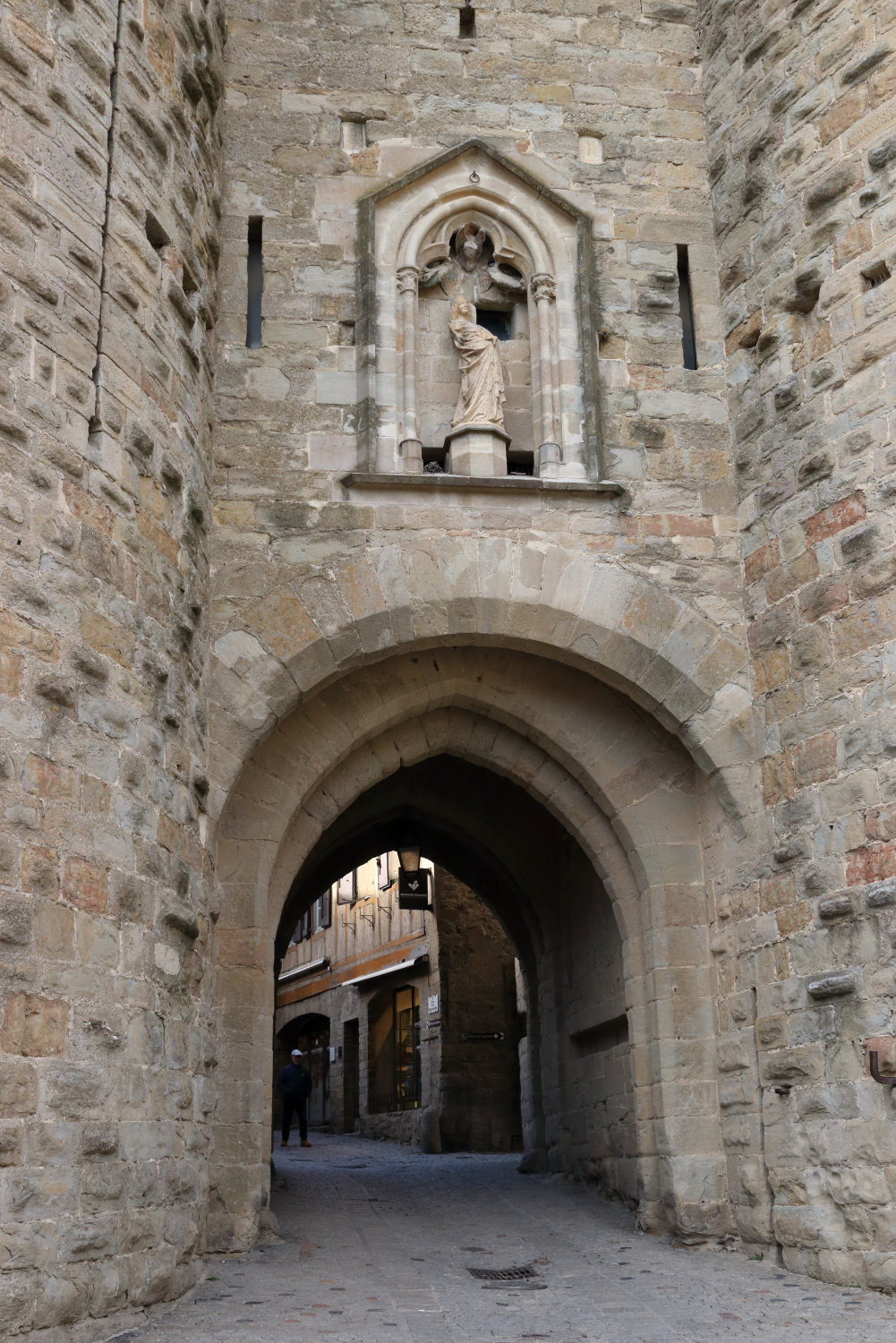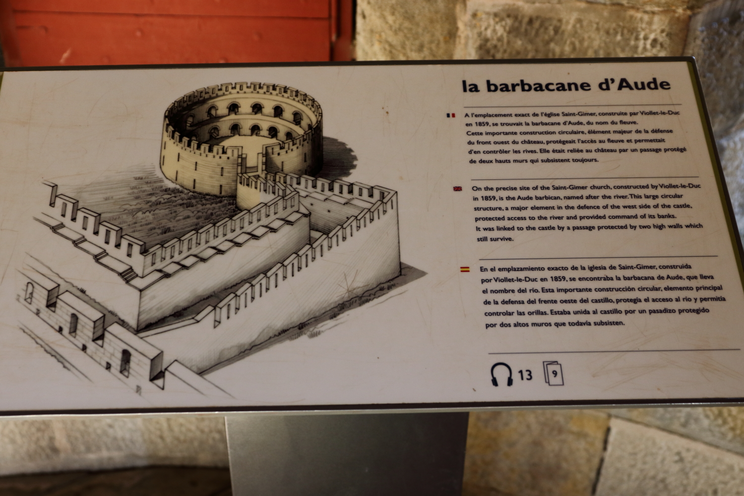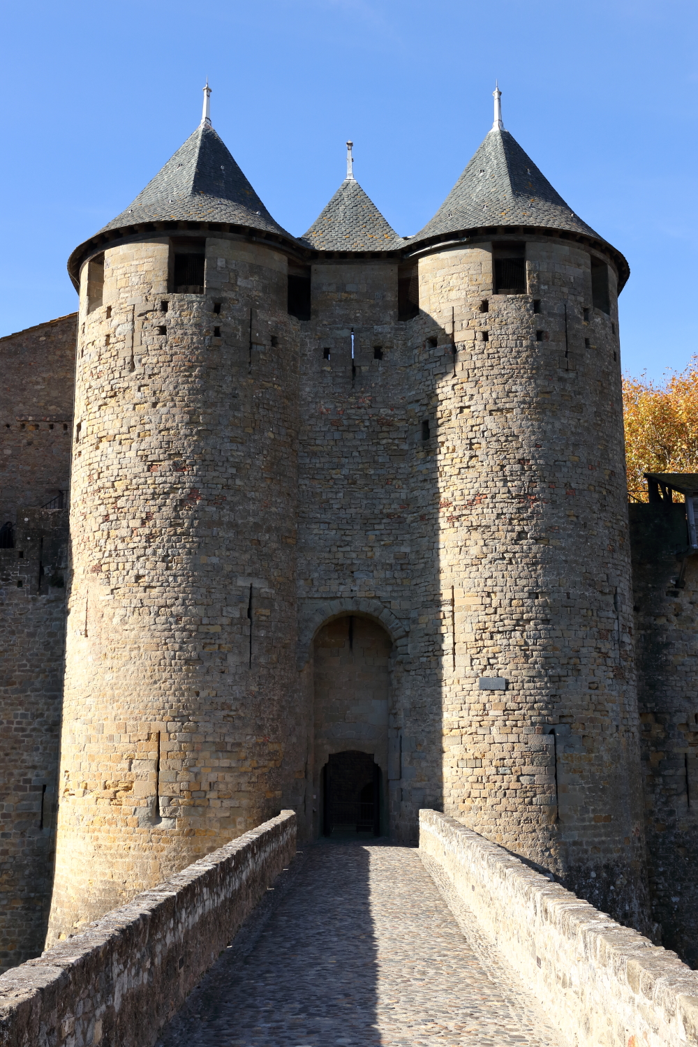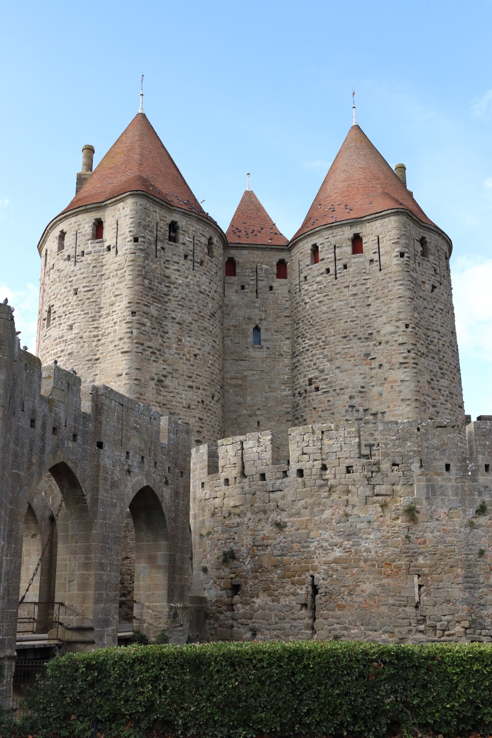 52 tours dont seulement 3 sont carrées. Viollet-le-Duc a mené la sauvegarde de la cité au XIXe siècle. Les stries sur les murs ne sont pas une illusion d’optique, mais une hérésie dont je préfère oublier le nom du réalisateur.