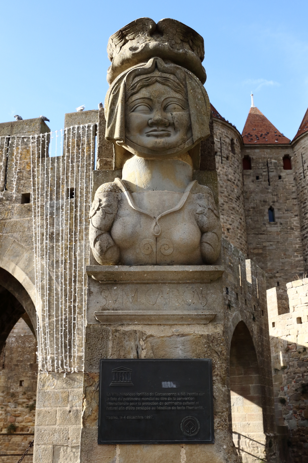 Allez, on fait la tournée des vigno…. heu des remparts. Après le décès du roi des Sarrasins, son épouse Carcas prend sa relève. Pour sa victoire stratégique, toutes les cloches sonnèrent. Elle donnera ainsi son nom à cette forteresse après qu’un soldat carolingien s’écria. Carcas sonne !!