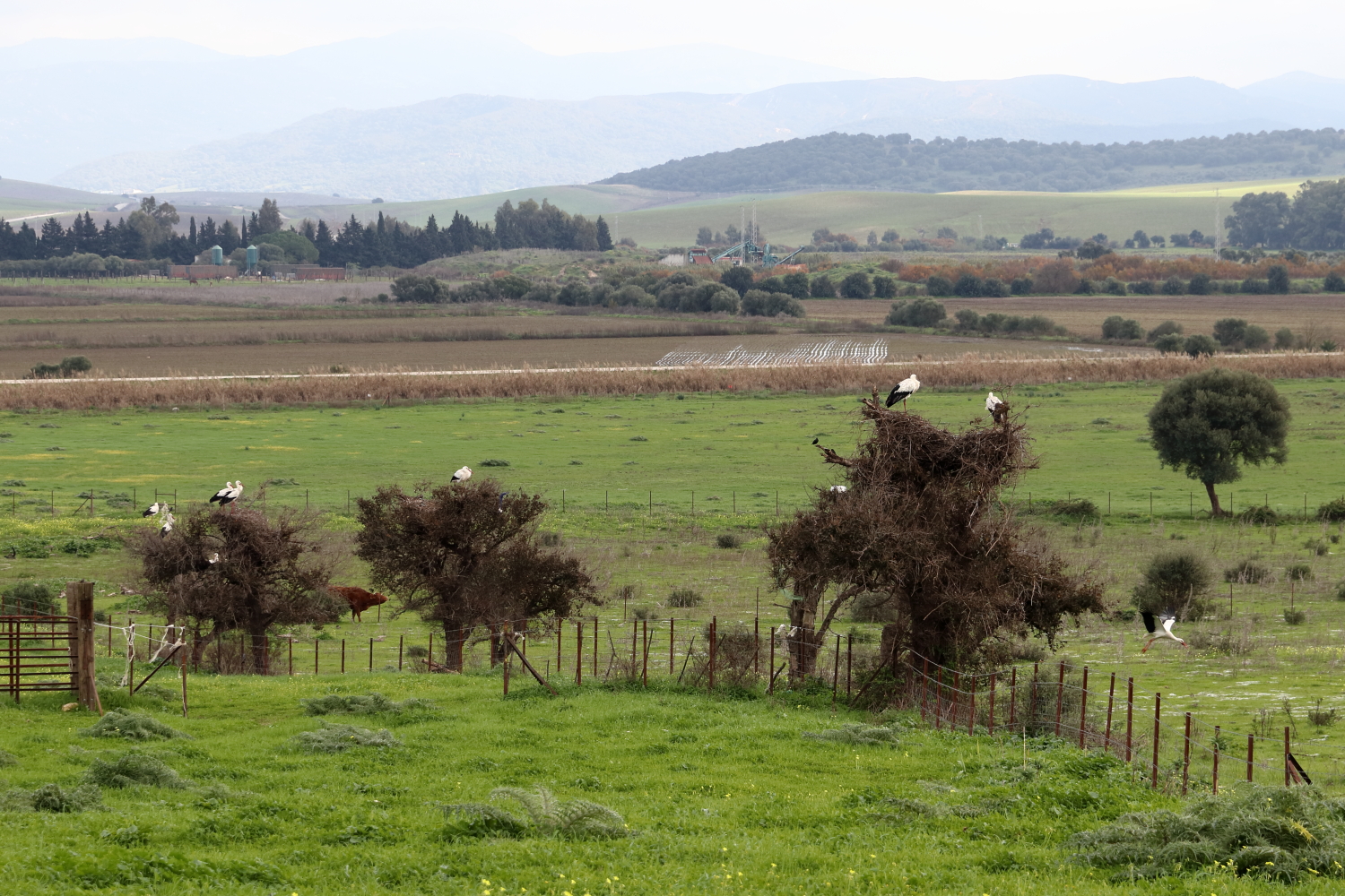 Nous quittons les cimes pour la plaine de Benalup-Casas Viejas. À regarder l’écriture de la ville, plus on descend vers le sud et plus l’influence mauresque se fait ressentir. C’est l’une des routes des grands migrateurs, les cigognes et les hérons abondent. Au cours d’une balade, on s’est retrouvé cerné par une transhumance de moutons, rigolo et sympa au milieu d’un concert de cloches.