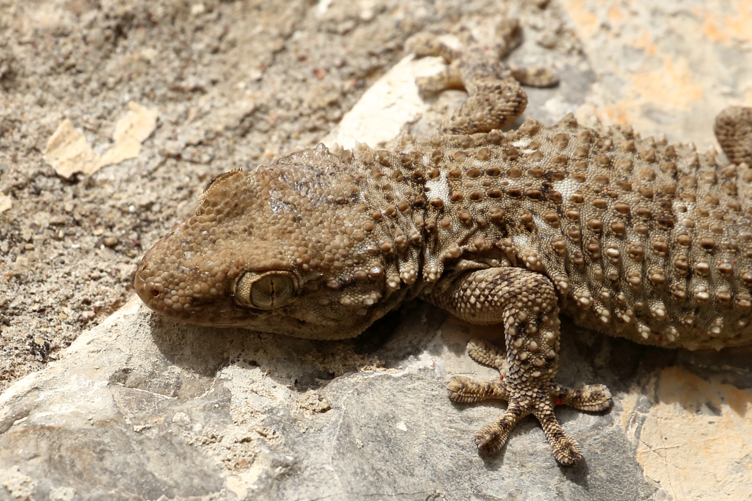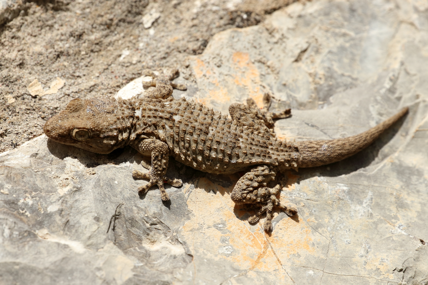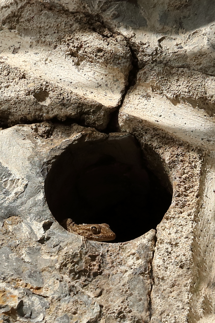 La flore des rues et la faune avec un petit reptile de la famille des geckos.