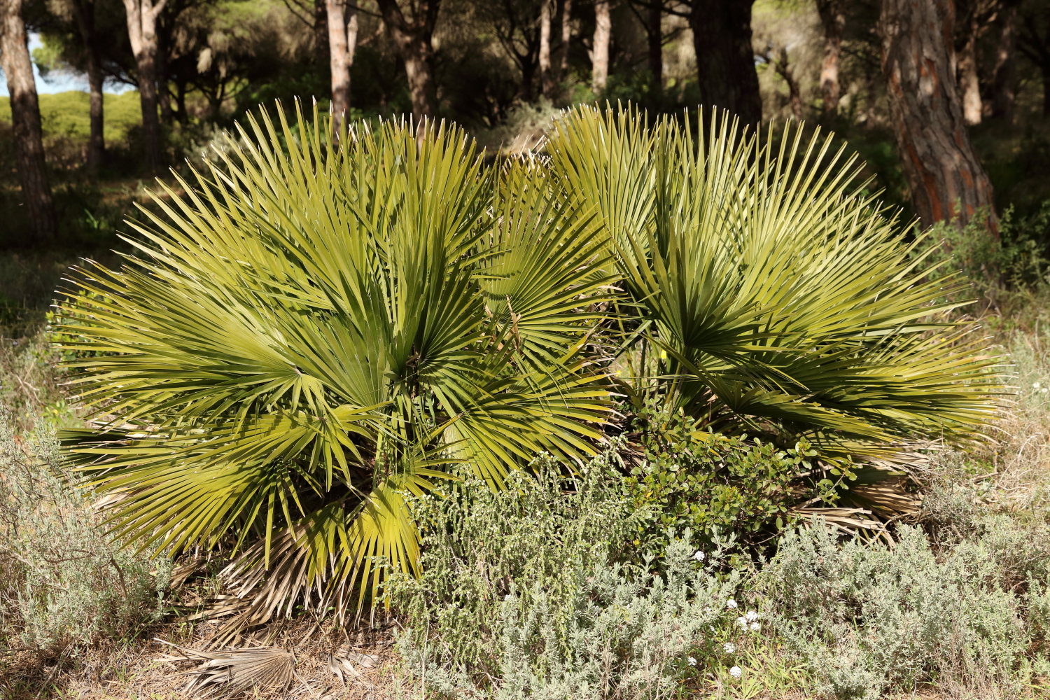 Le palmier nain, il est très courant sur le bassin de la Méditerranée.