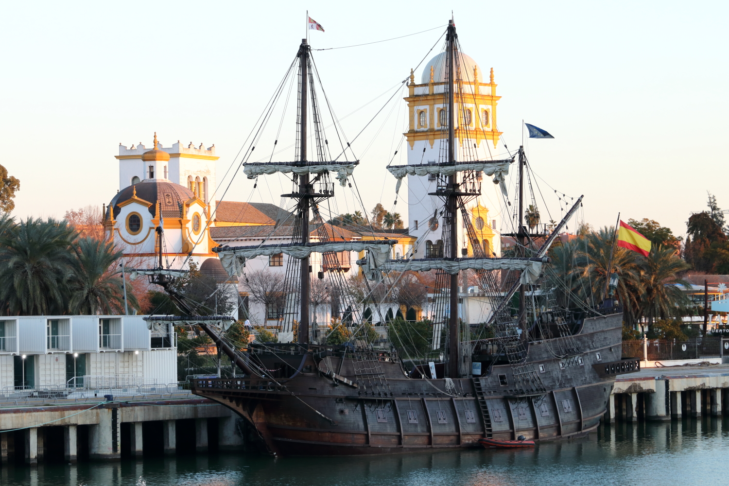 À proximité des arènes, la statue en bronze de Maria Mercedes, mère de Juan Carlos 1er et amoureuse de la culture andalouse. Réplique d’un galion espagnol du XVIIe siècle, El Galeón était amarré. Lancé en 2010, avec 38 m de longueur de coque, il a été créé par Ignacio Fernández Vial dans un chantier naval de Huelva.
