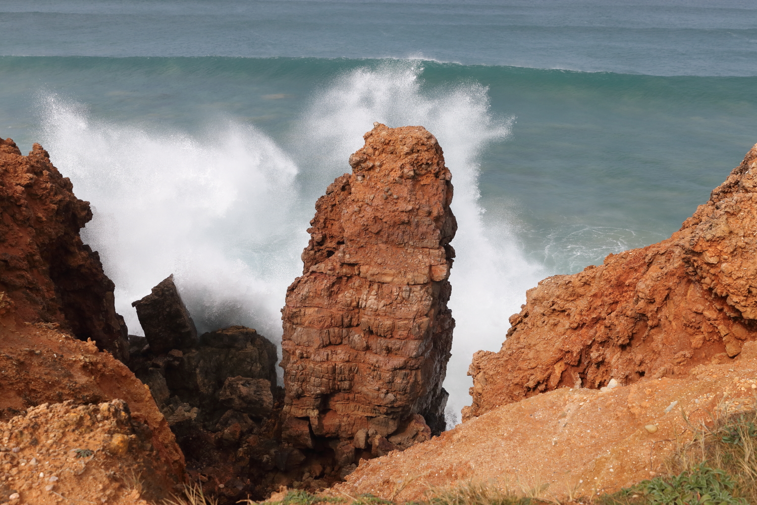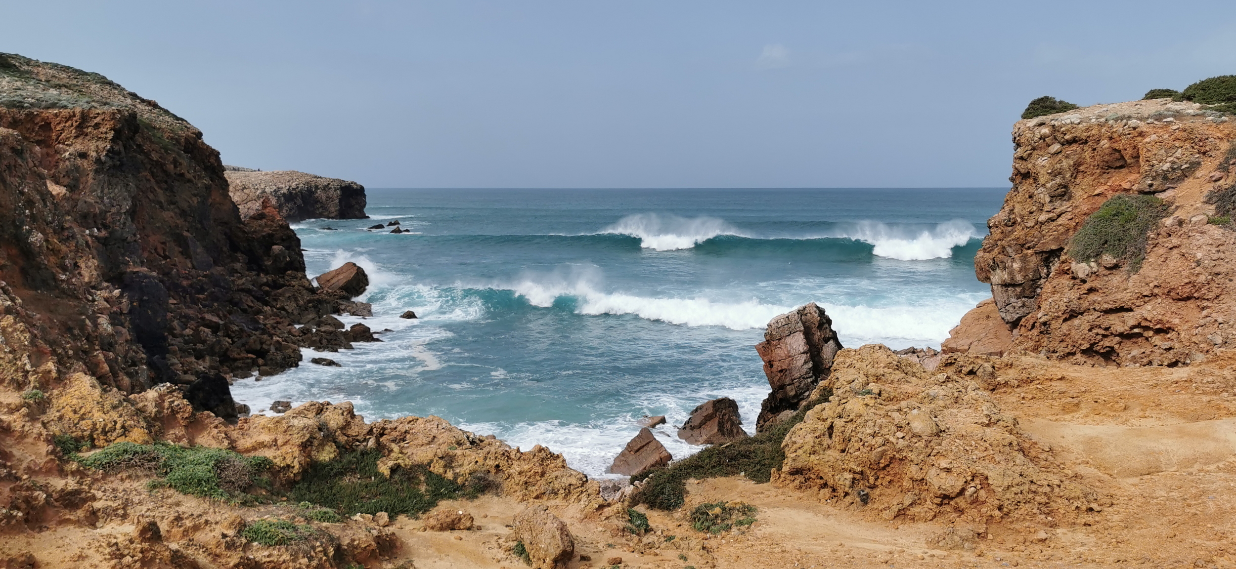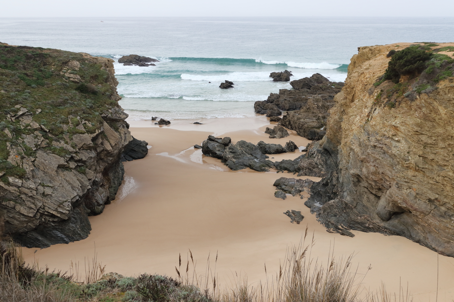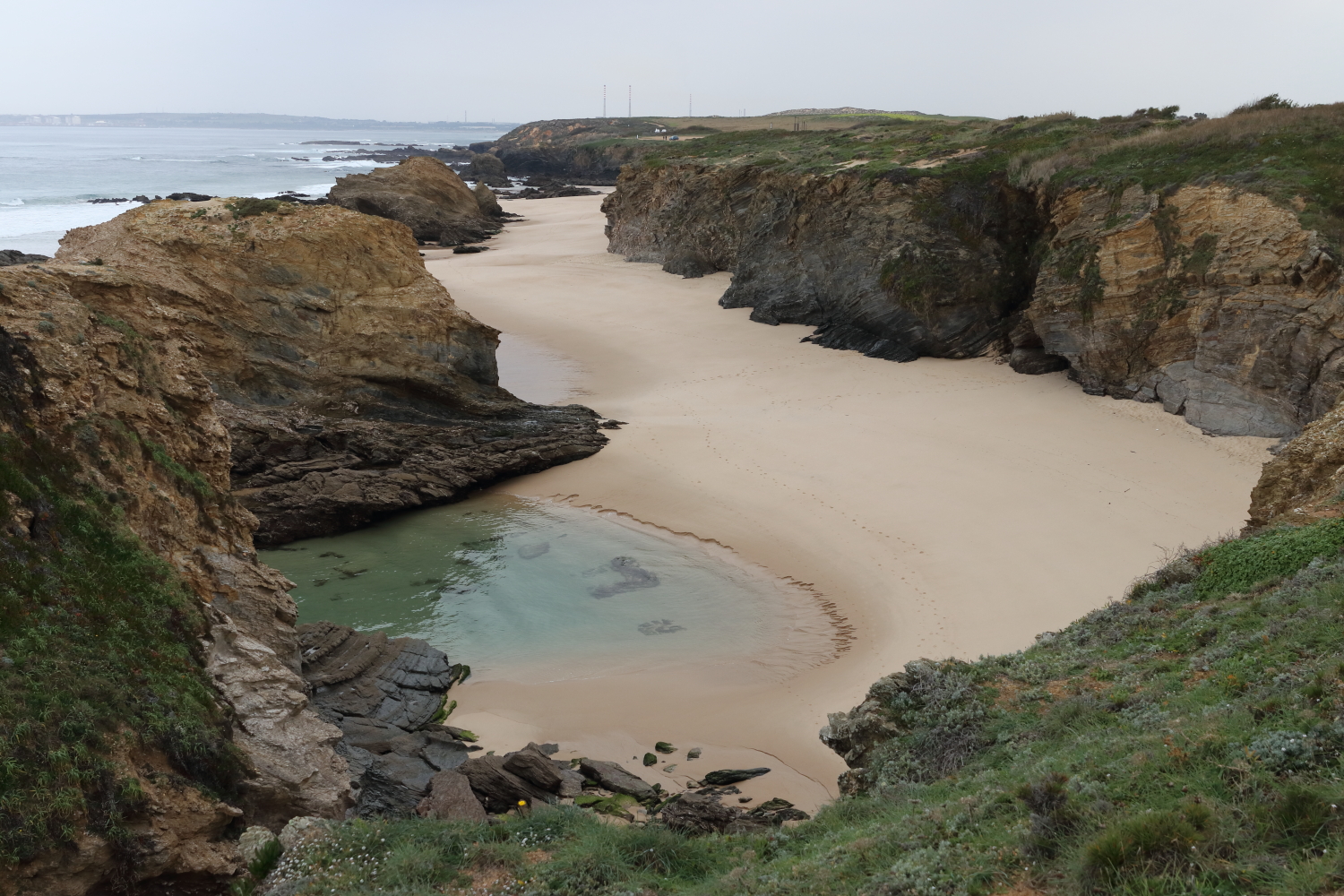 Nous allons couvrir dans un premier temps la côte atlantique portugaise jusqu’à Lisbonne. En quittant Sagres, après 23 km, nous stoppons sur la plage de Bordeira. Face à l’immensité de Dame Nature, notre taille humaine lilliputienne ne fait qu’amplifier les beautés du paysage.