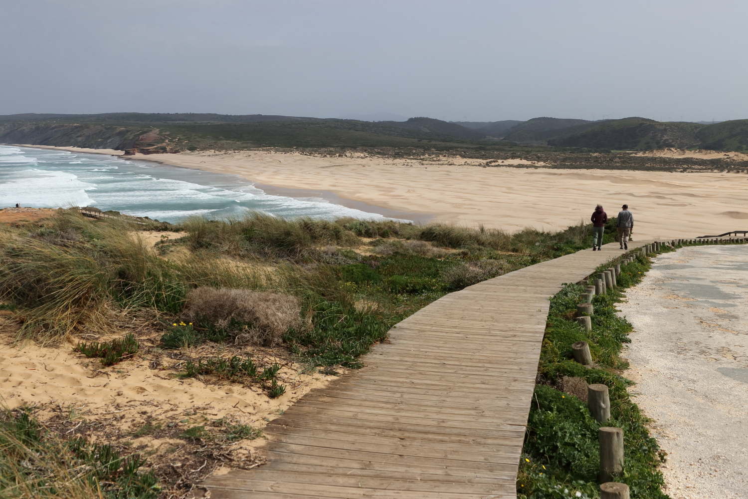 C’est un mini désert qui s’ouvre à nous. De nombreuses passerelles permettent de préserver les sols en facilitant l’accès aux différents spots, une initiative judicieuse de plus en plus courante au Portugal.