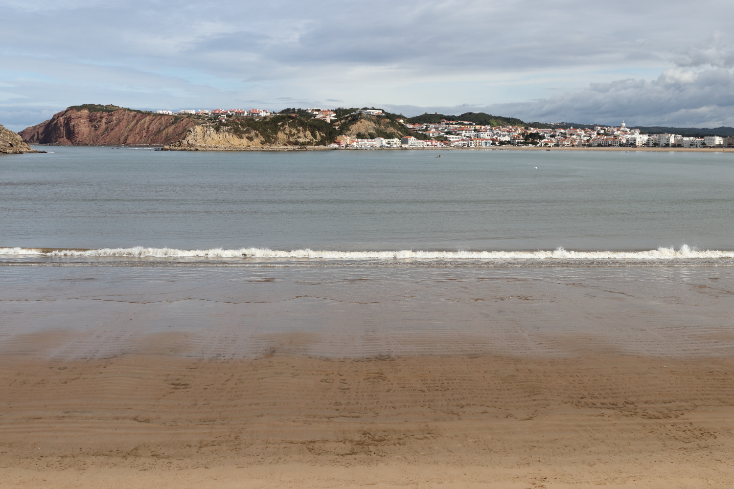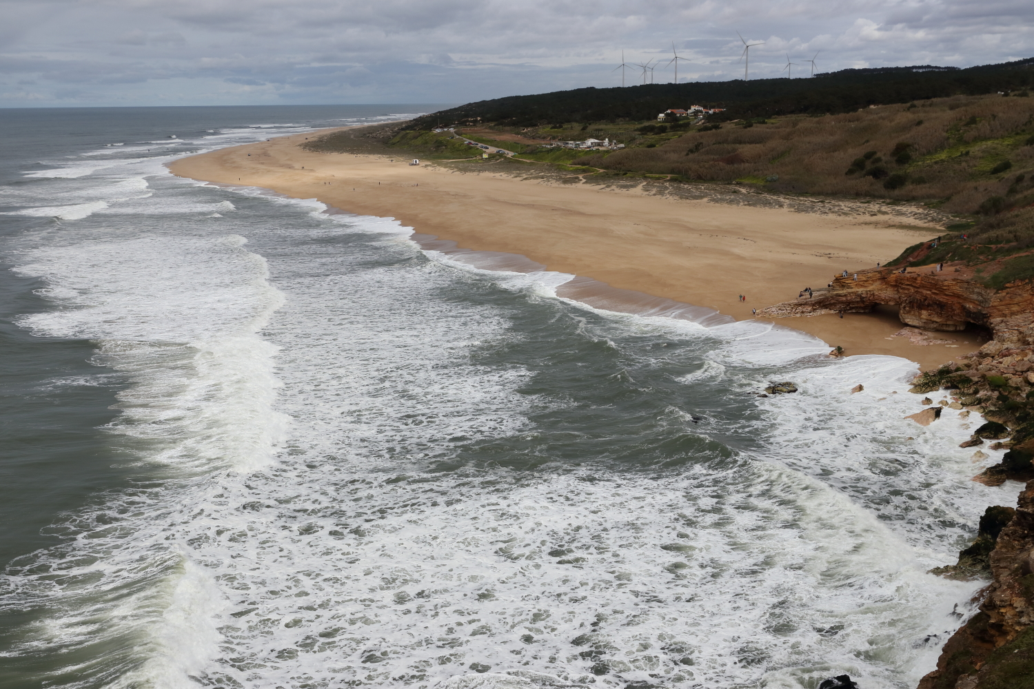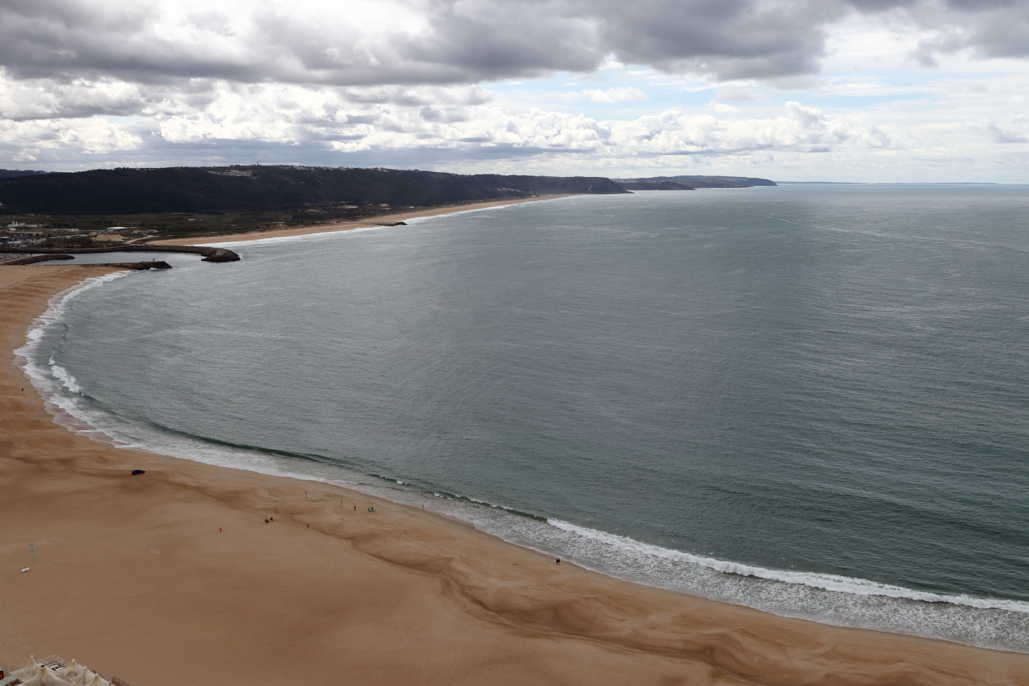 La plage de São Martinho do Porto est une pure merveille. Sur Google Maps, sa forme ressemble à une coquille Saint-Jacques. L’océan pénètre entre deux falaises, sur tout son pourtour, comme une onde de choc. Une seule et unique vague vient s’échouer sur la rive, un tableau surprenant et rarissime.