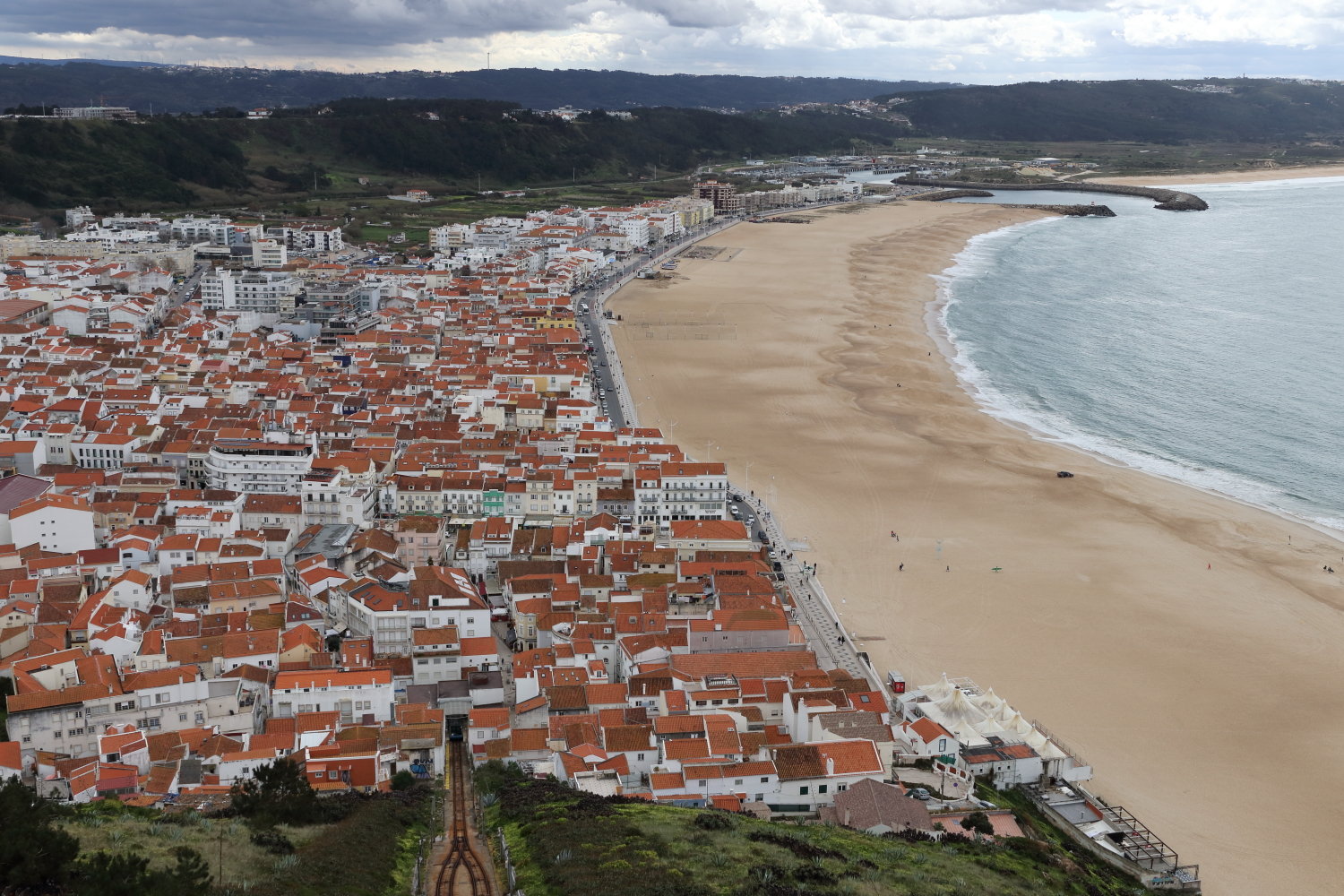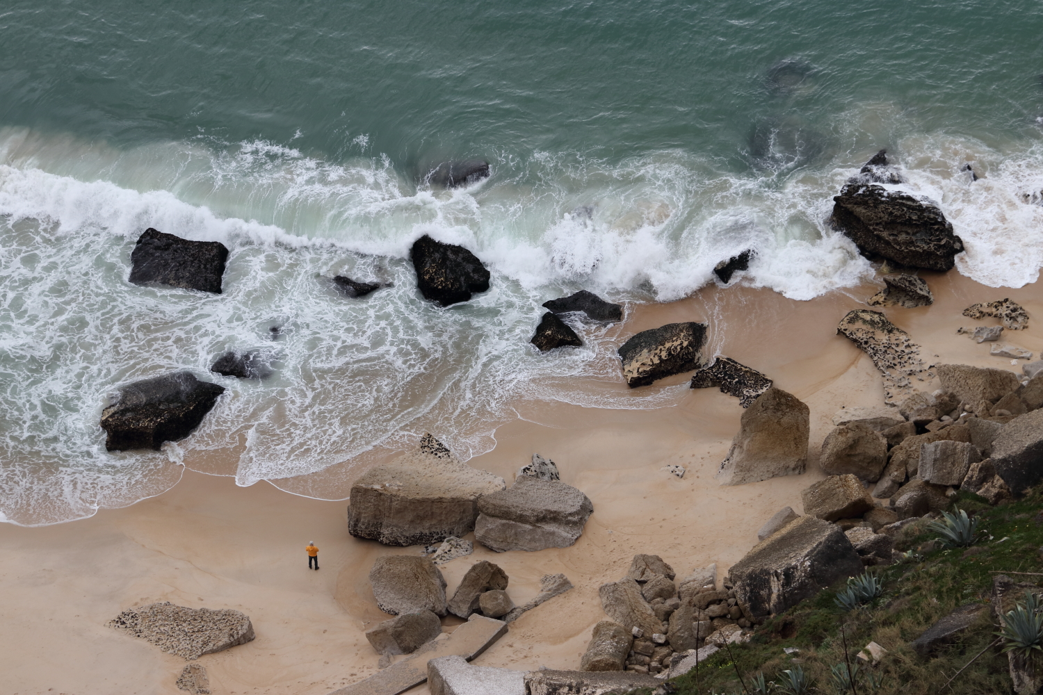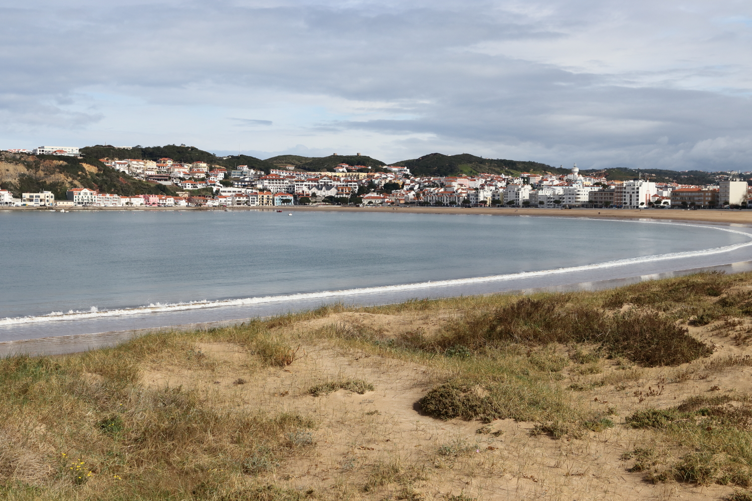 La plage de São Martinho do Porto est une pure merveille. Sur Google Maps, sa forme ressemble à une coquille Saint-Jacques. L’océan pénètre entre deux falaises, sur tout son pourtour, comme une onde de choc. Une seule et unique vague vient s’échouer sur la rive, un tableau surprenant et rarissime.