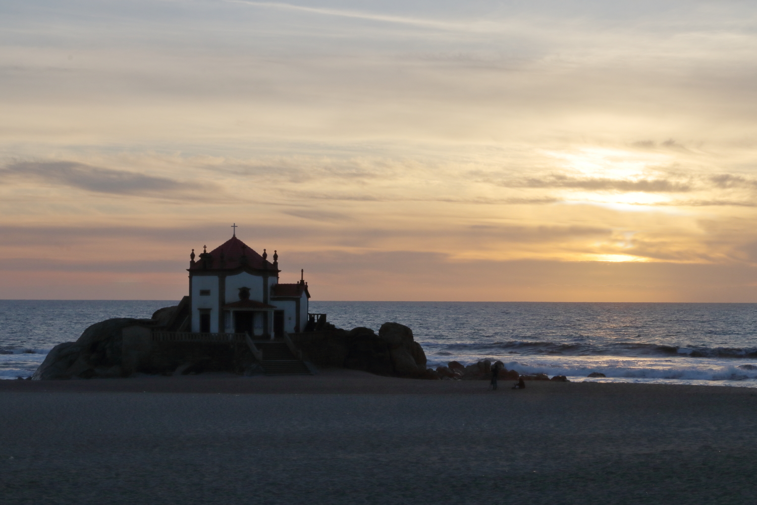 Vila Nova de Gaia et sa plage qui s’étire vers le sud sur 17 km. On y a découvert une petite chapelle sur un monticule rocheux.