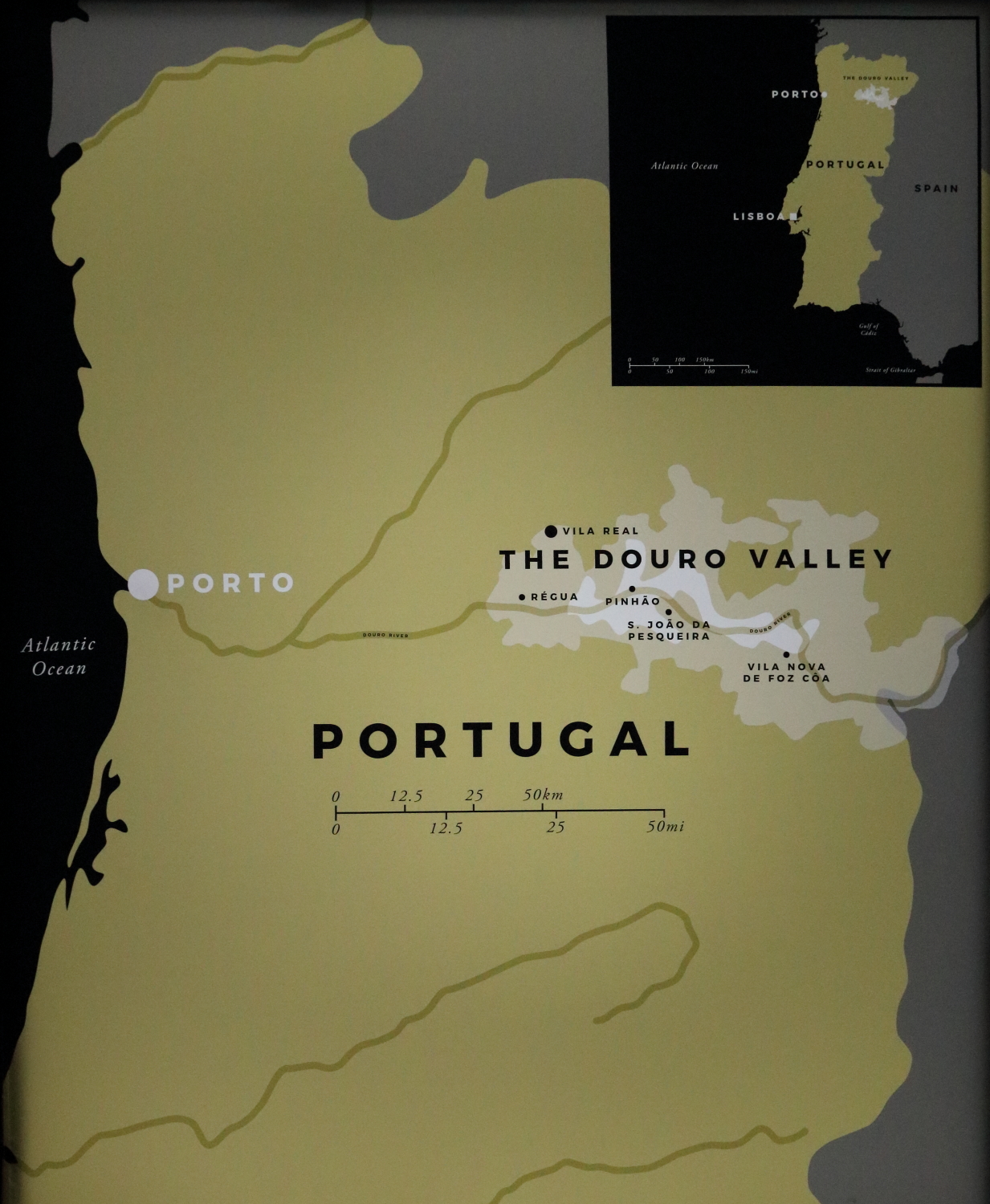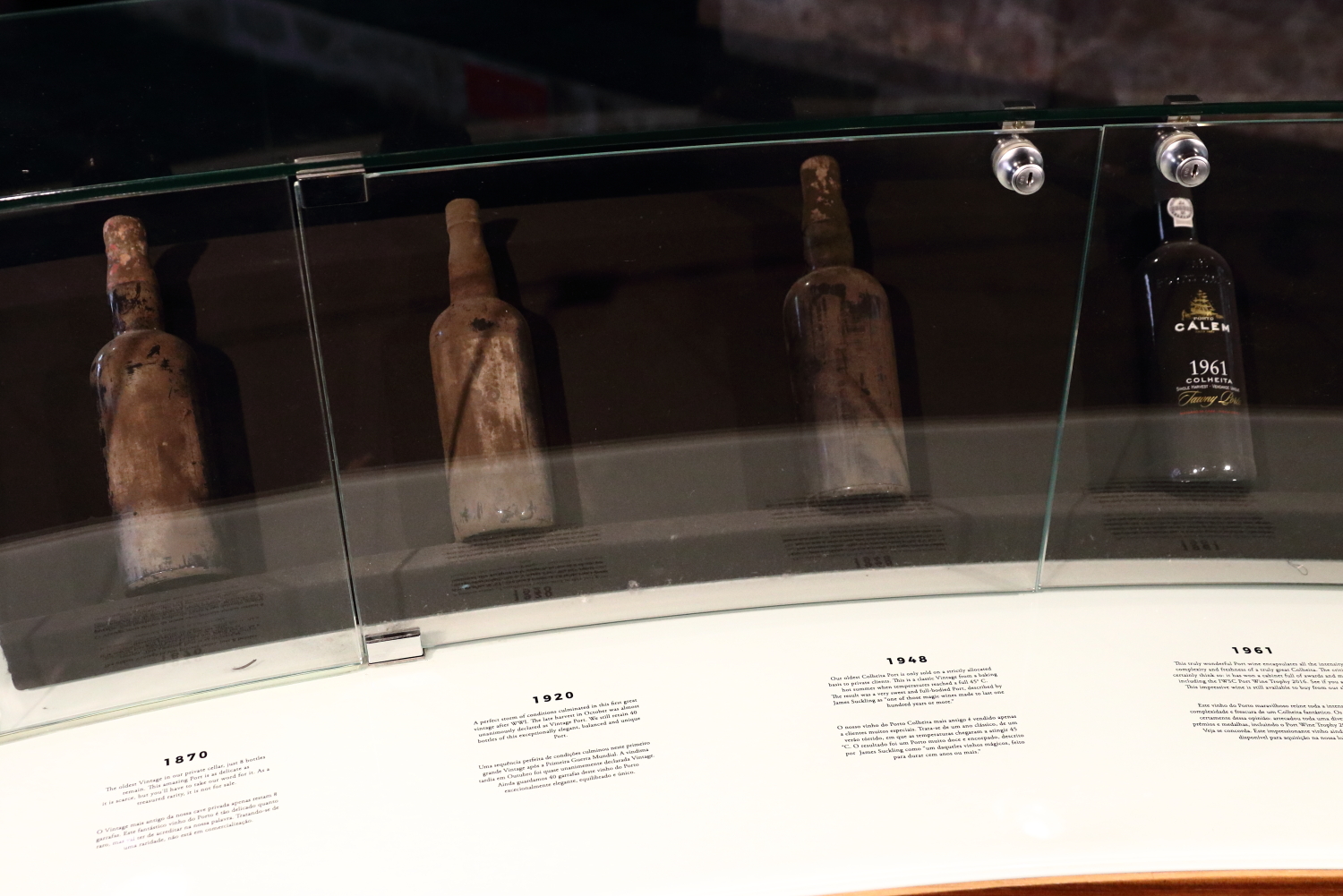 La vallée du Douro est un territoire béni des Dieux pour la viticulture. Célèbre pour sublimer les terrasses des vignobles en produisant un vin très apprécié, le Porto. Pour la conservation de celui-ci, en raison de son ombrage et de son humidité, toutes les caves sont sur la rive de Vila Nova de Gaia. L’entreprise Calem produit 10 millions de bouteilles/an, principalement à partir du cépage Tinta Barroca. Nous avons cherché à négocier en partie notre butin du coffre-fort contre le plus ancien millésime datant de 1870, mais les tractations n’ont pas abouti.