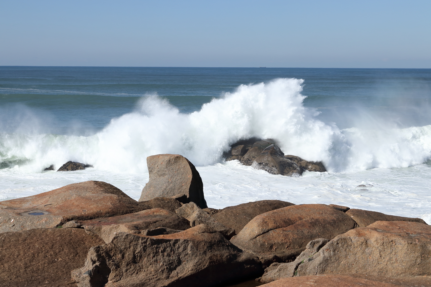 Le tramway nous a acheminé jusqu’au phare de Felgueiras où la houle brisait ses rouleaux sur cette balise granitique de 10 m de haut.