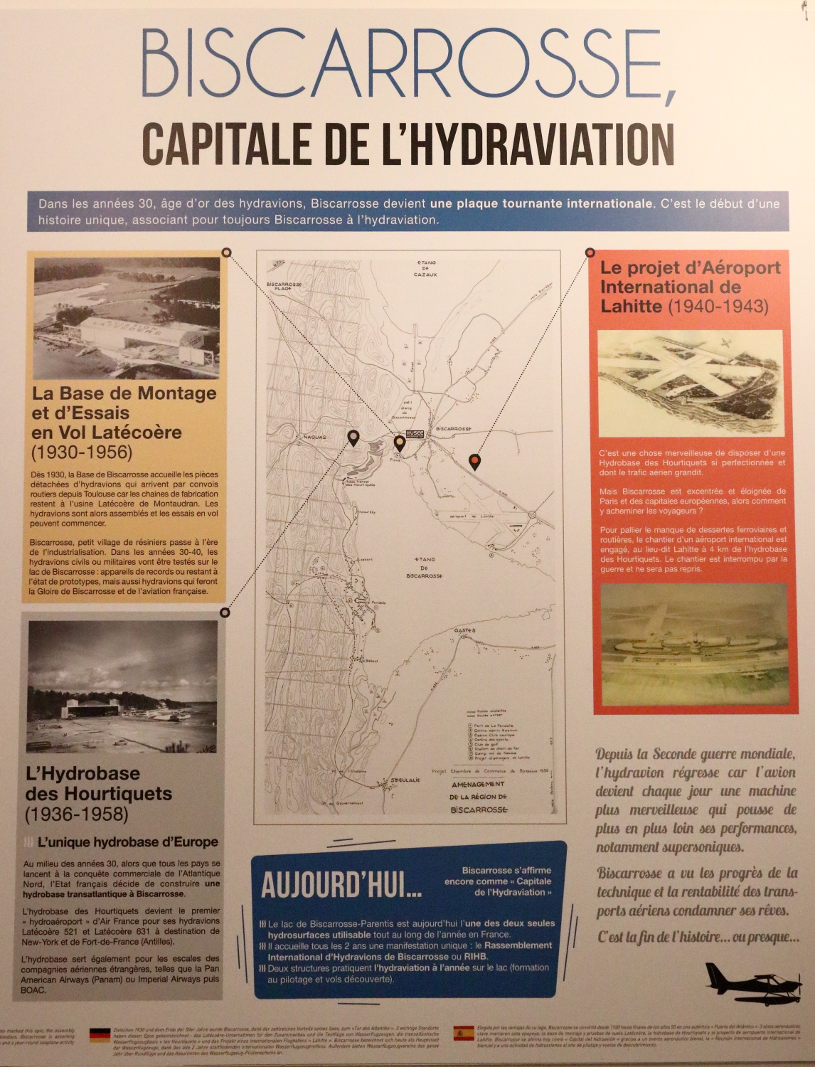 Partir à la conquête du ciel en décollant d’un plan d’eau, le musée de l’Hydraviation de Biscarrosse le relate formidablement bien. Tous les thèmes sont abordés, les maquettes des appareils démontrant l’évolution technologique dans la démesure. Avec 10 km de long, le lac de Biscarrosse-Parentis dans cette région Aquitaine est idéal pour le déjaugeage et l’amerrissage d’un avion.