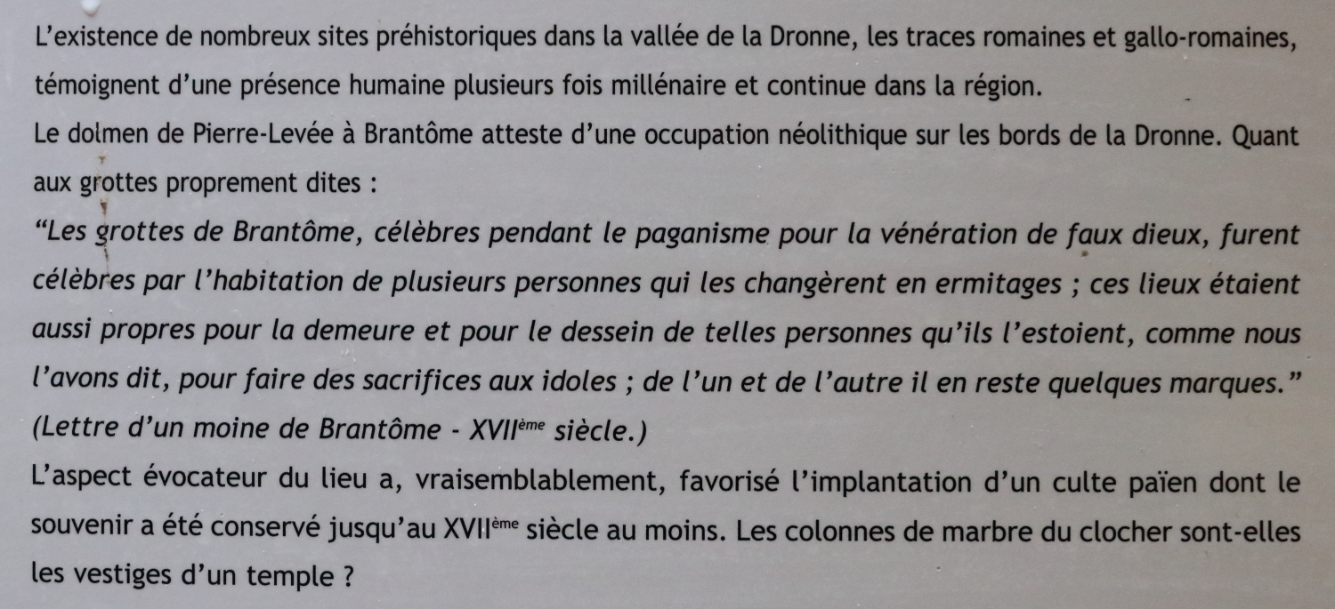 Commune de Dordogne traversée par la rivière Dronne, Brantôme est la Venise du Périgord. Fondée en 769 par Charlemagne, son abbaye bénédictine en est l’une des attractions touristiques avec son église. Son clocher roman à gâbles est le plus ancien du Limousin (technique de construction).