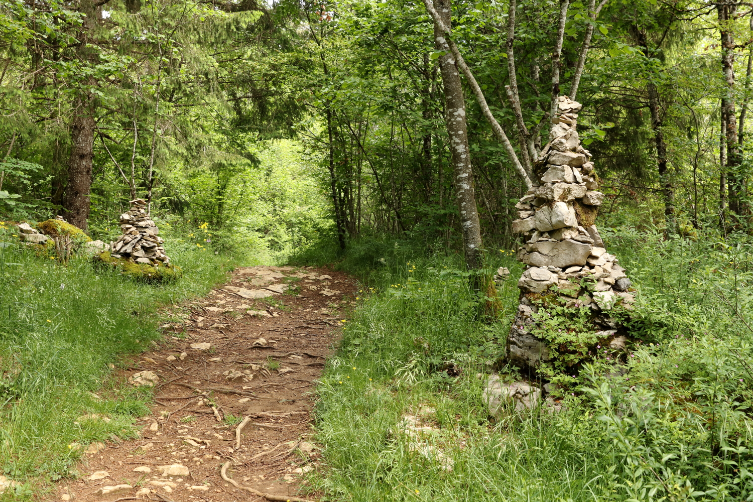 Sur le sentier des Cairns, deux passionnés ont réalisé un balisage original à l’intention des promeneurs avec plusieurs dizaines de monticules pierreux de 0,30 à 1,50 m de hauteur aux formes diverses. Chaque pause offre une détente avec une vue sur la campagne environnante, un travail remarquable.