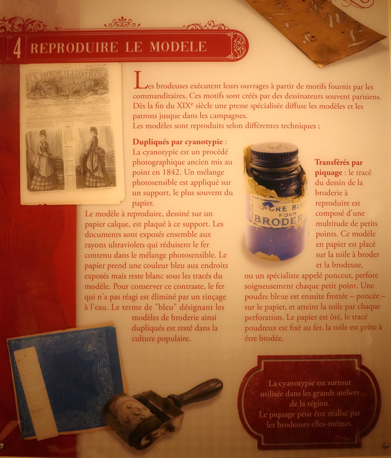 Pendant que les messieurs distillaient, les dames s’affairaient à la broderie. Leur savoir-faire allait jusqu’à New-York, aux Antilles et dans la haute couture parisienne.