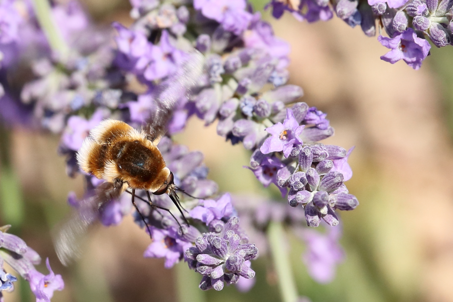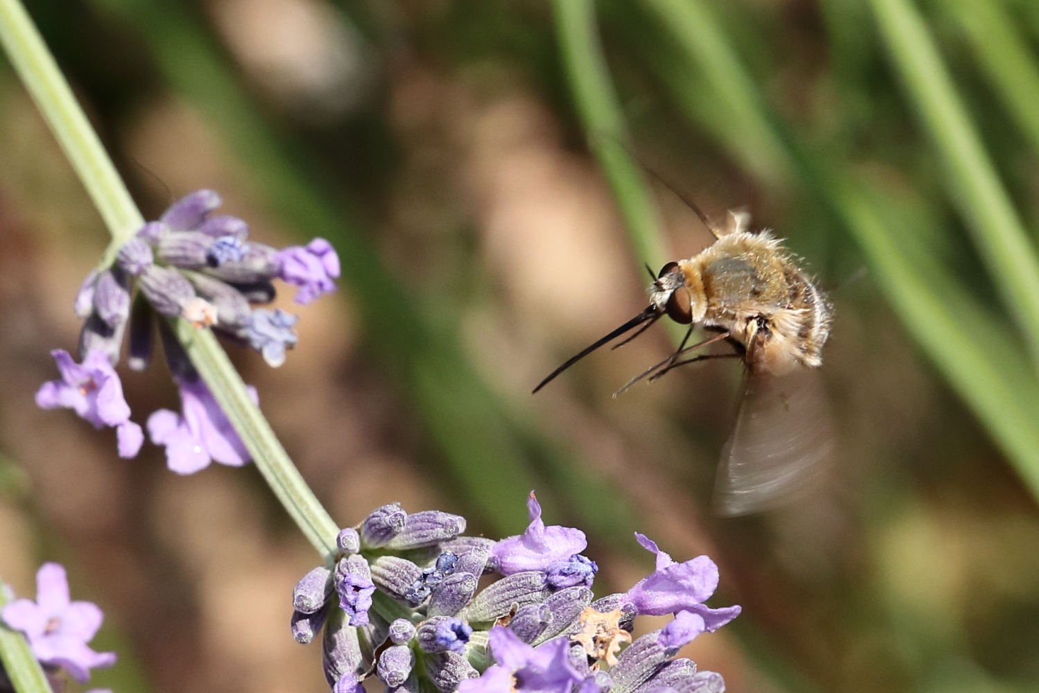 On entendait les mouches voler…Le Grand Bombyle, cette mouche mesure entre 9 et 12 mm, possède une trompe presque aussi longue que son corps et vole aussi vite qu’un colibri.