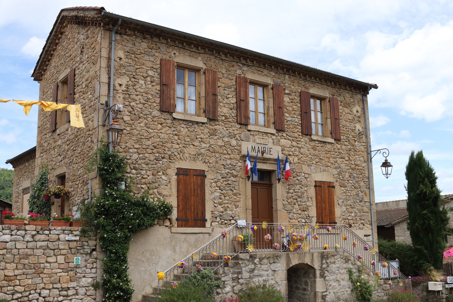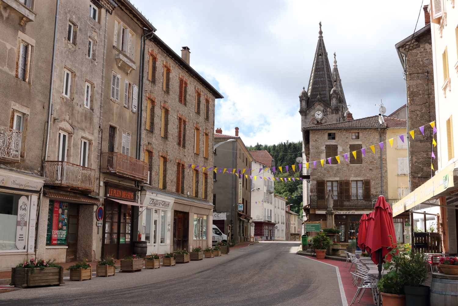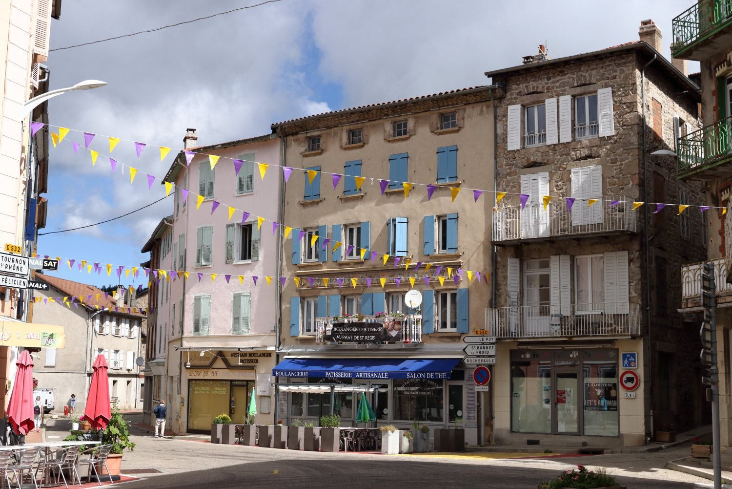 L’Ardéchoise, une course cycliste de montagne parmi les plus populaires en Europe réunissant chaque année entre 10 000 et 15 000 participants sur 4 jours, le genêt et les myrtilles symbolisent la couleur de l’Ardèche. La décoration reste encore quelques jours après le passage des coureurs.
