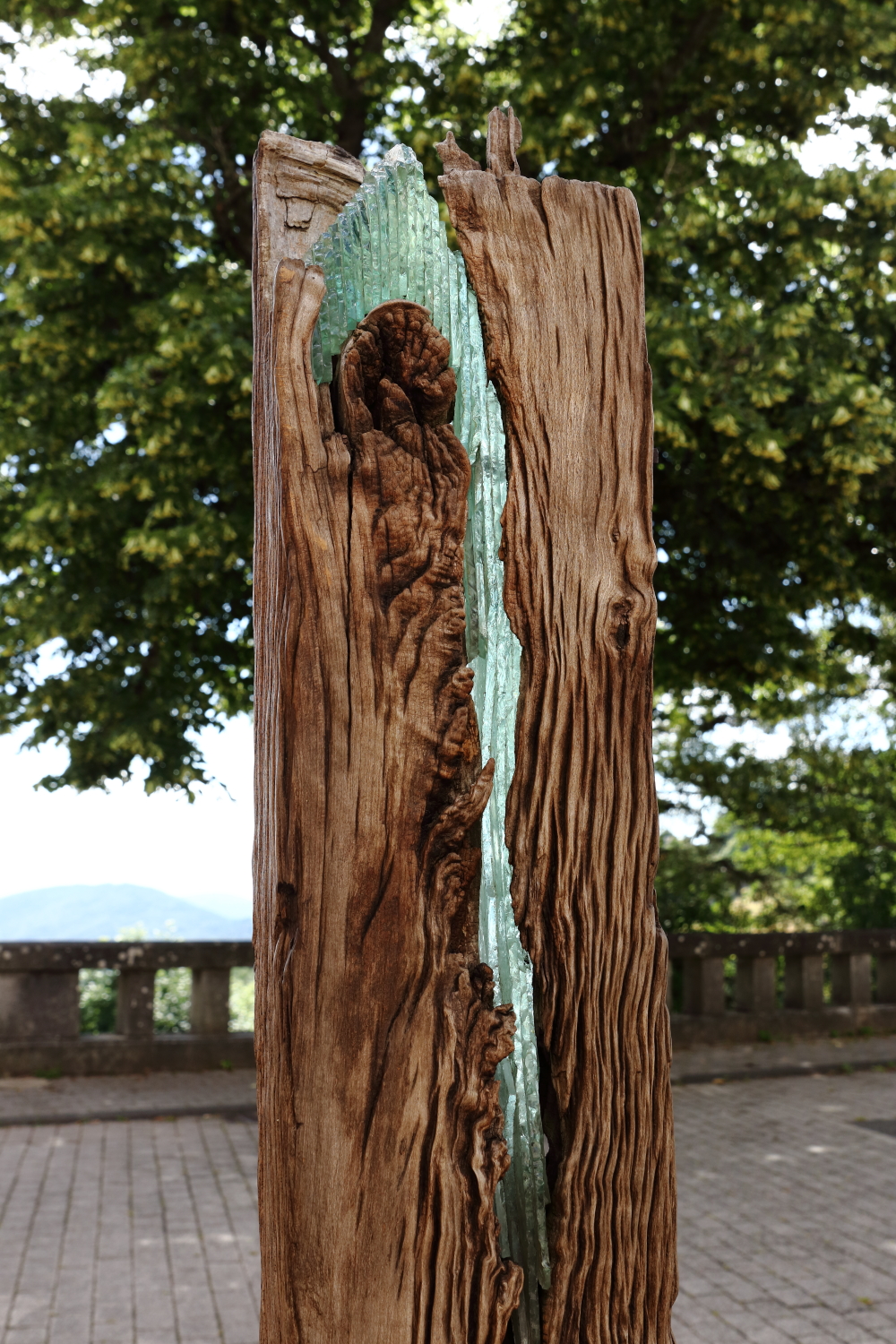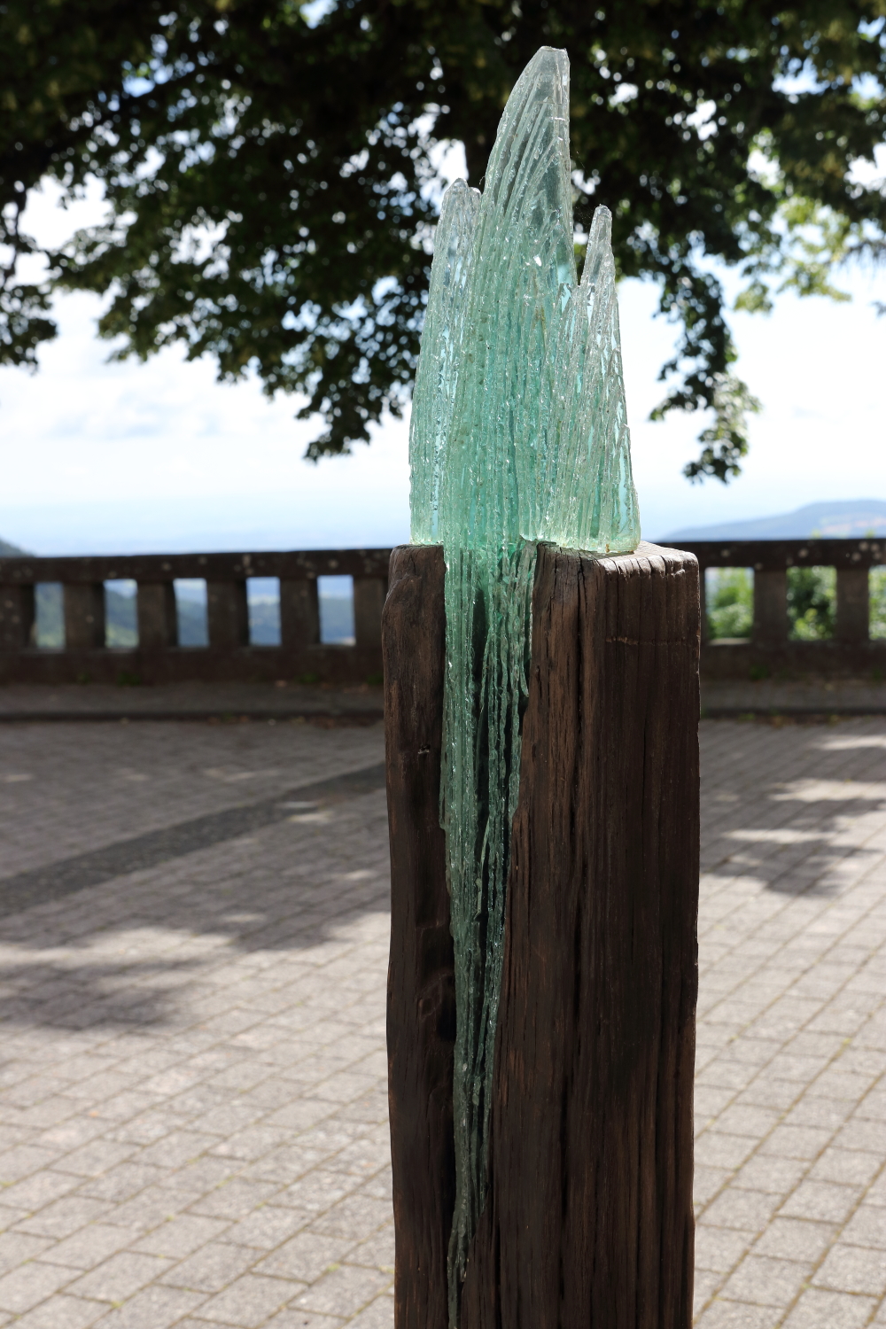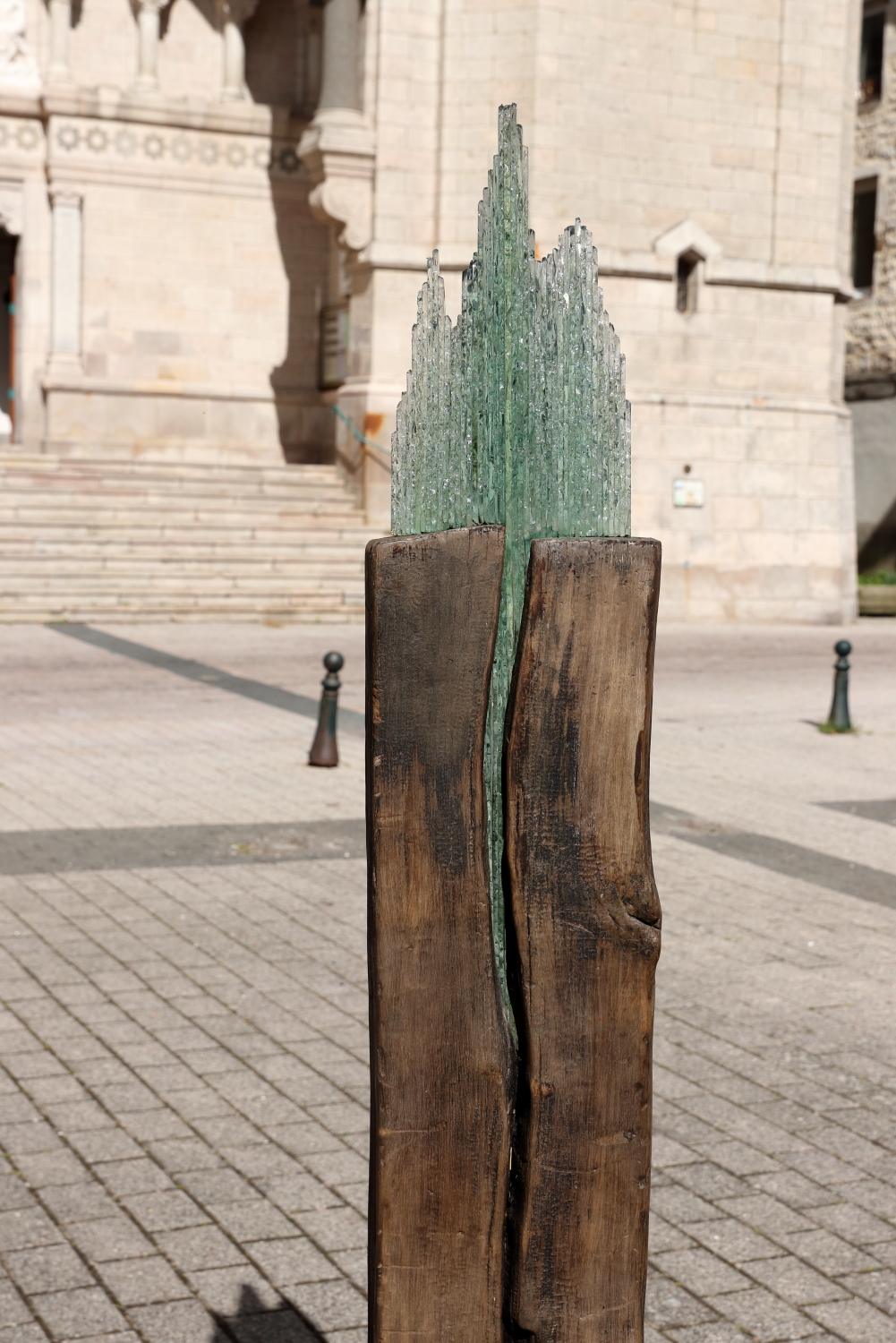 Sculpture très originale sur le parvis de la basilique de Lalouvesc, une commune proposant des expositions artistiques.