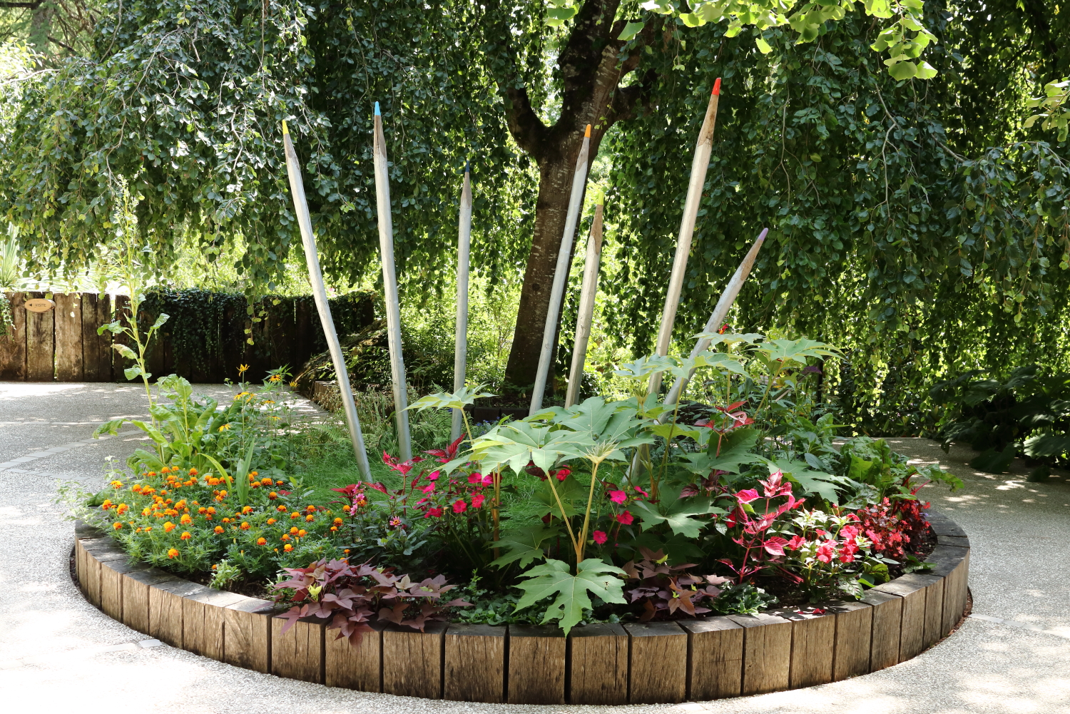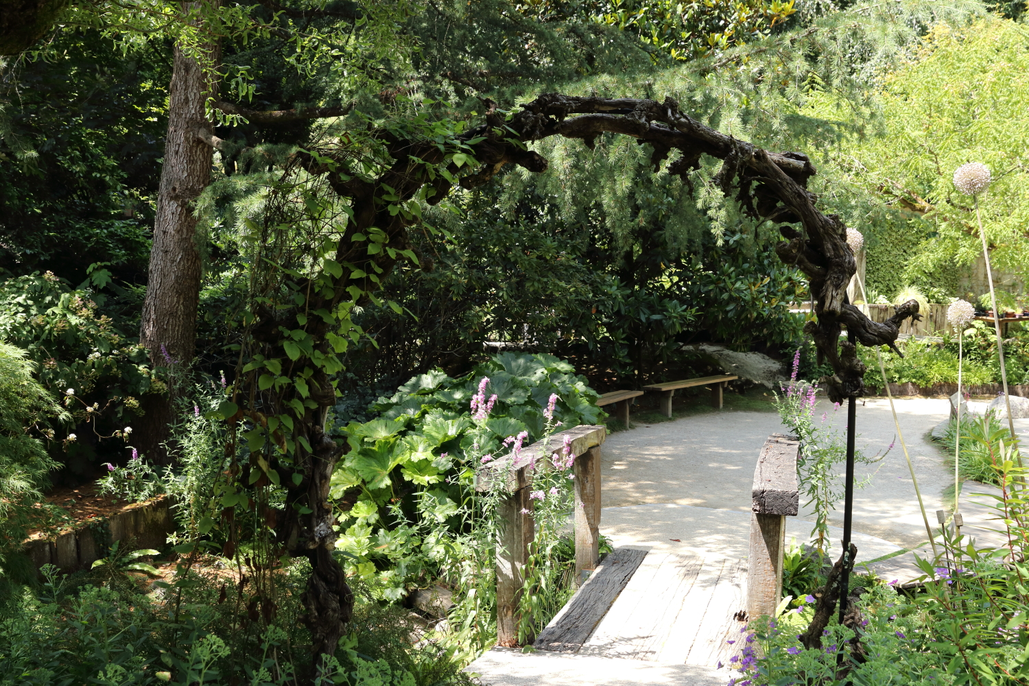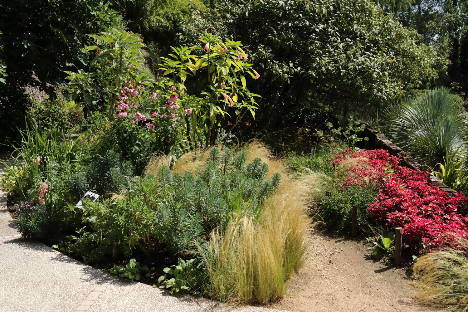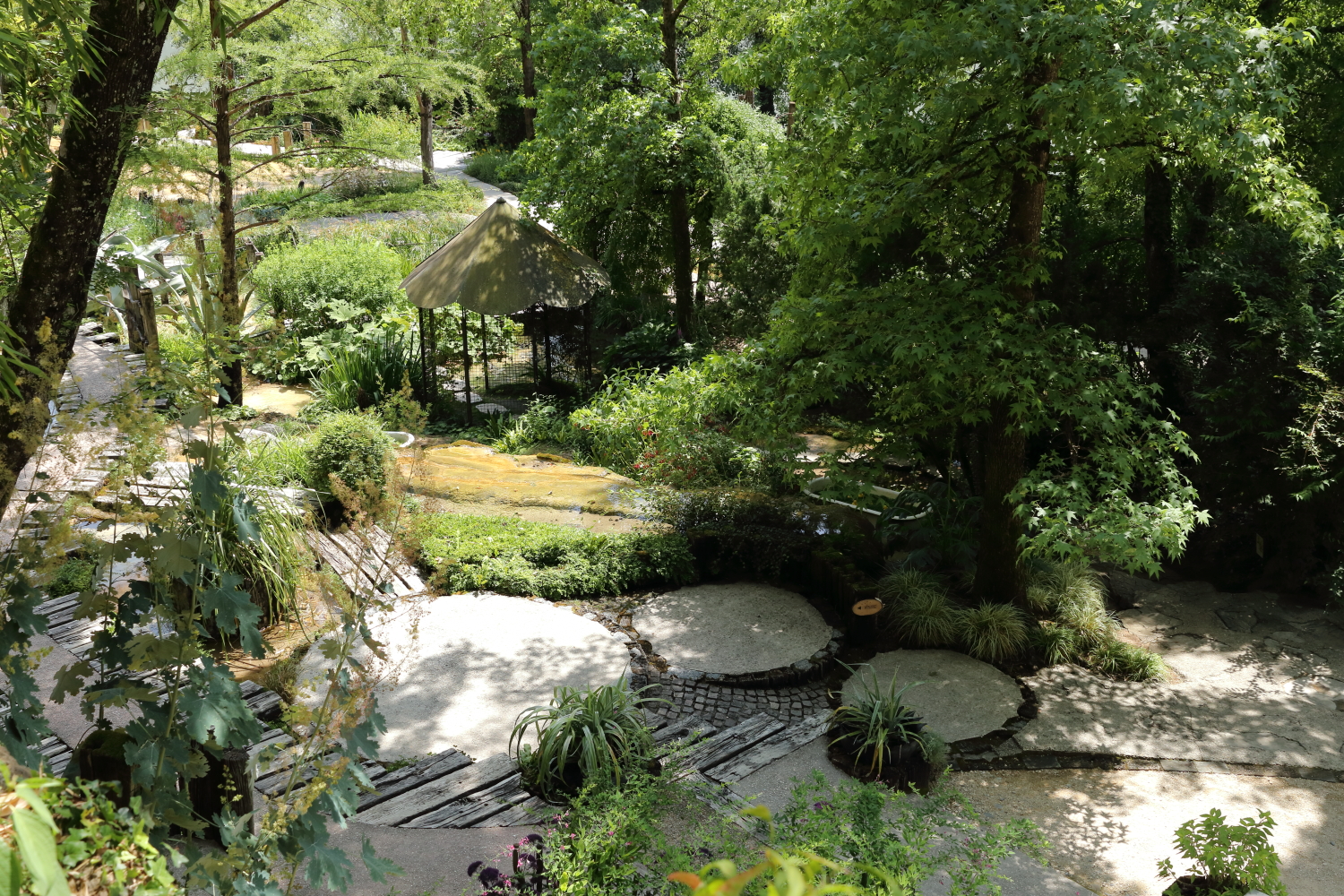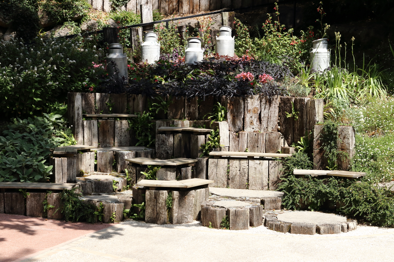 Tout au long de la visite, le mobilier de jardin permet d’en apprécier le cadre. Son exposition lui assure un microclimat où l’eau des bassins ne descend jamais en dessous de 10 °C.