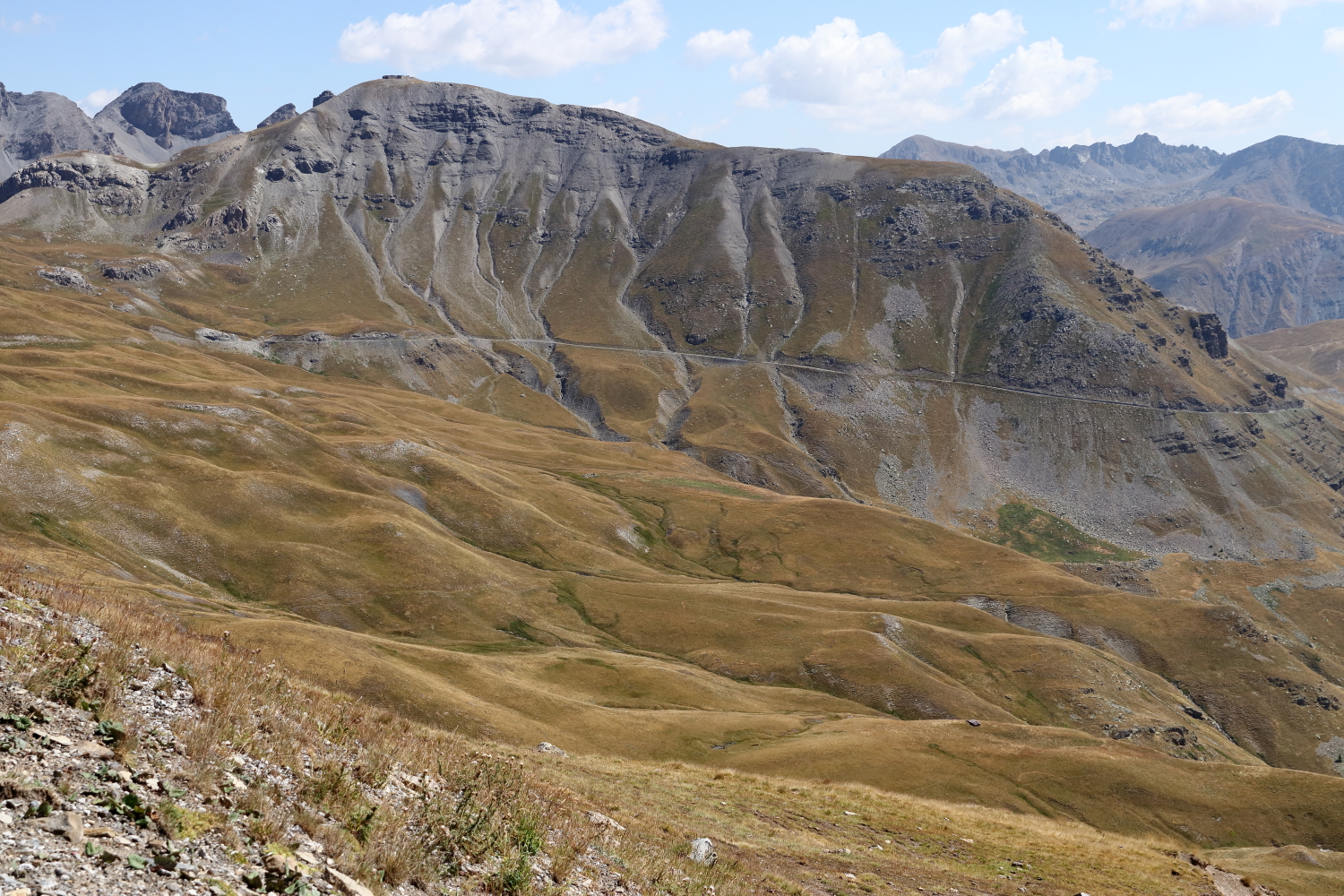 Nous laissons derrière nous la Vésubie, JJ s’attaque à présent à la plus haute route goudronnée de France, le col de la Cime de la Bonnette (2802 m), nous tutoyons des sommets aux panoramas lunaires.
