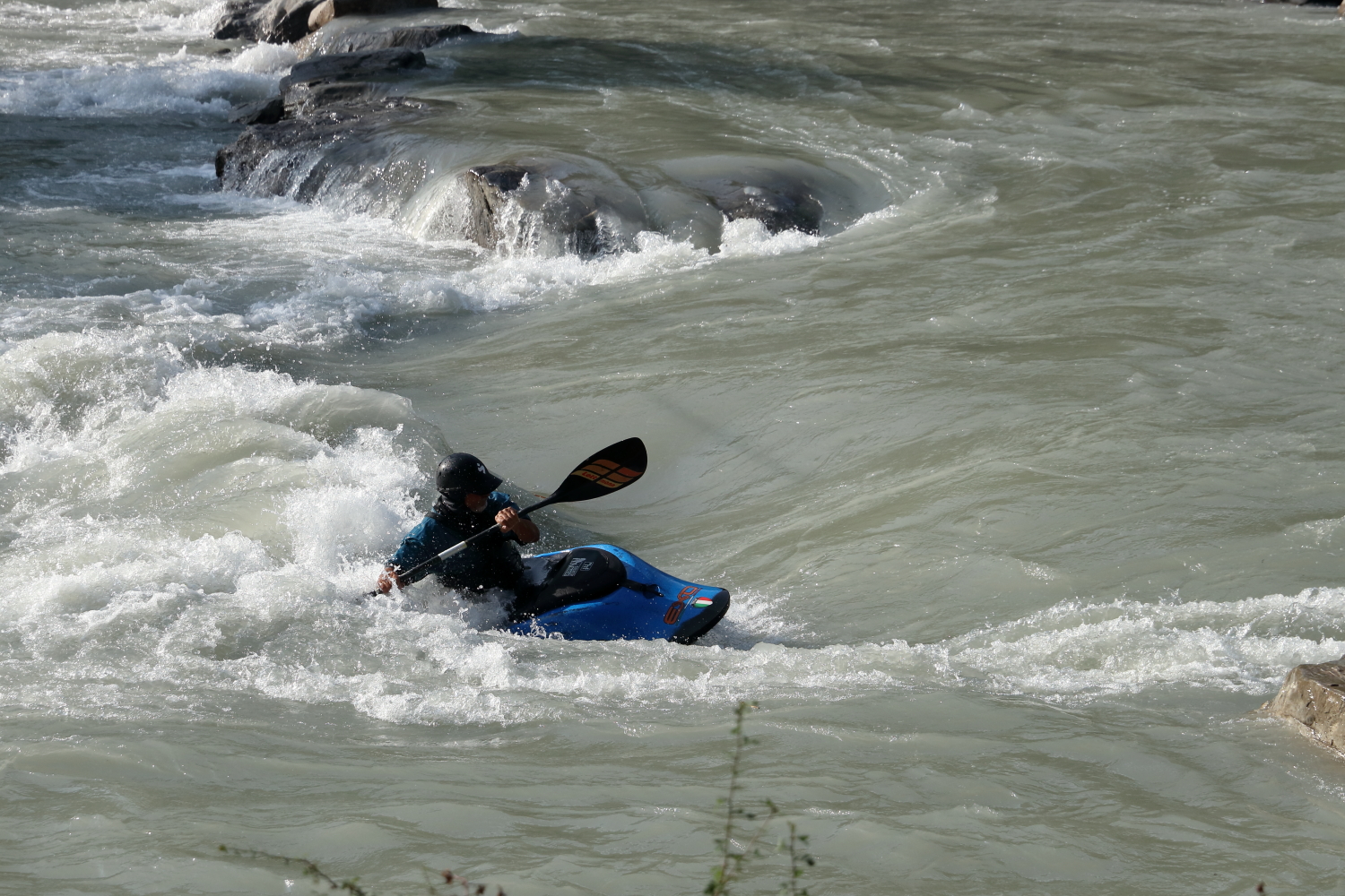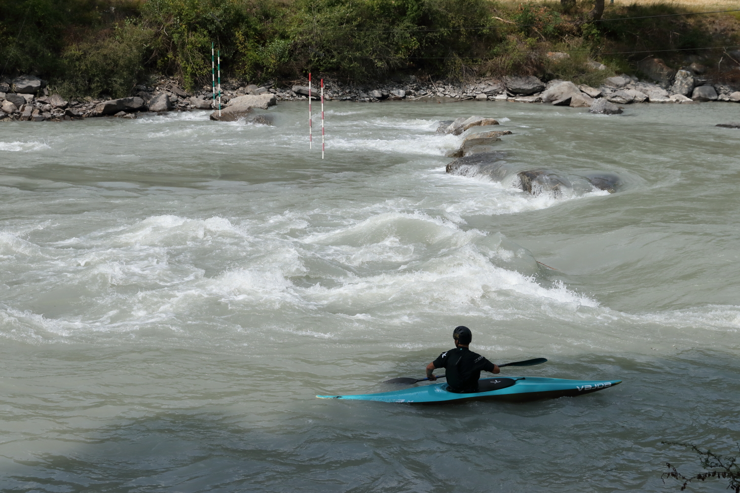 Comme on n’est jamais certain d’avoir du réseau en altitude, on essaye d’anticiper nos excursions en se posant sur les bords de la Durance. Nous sommes restés un bon moment à regarder les techniques des sports d’eaux vives. Sur la photo (La Durance n°8), la personne lévite dans le creux de la vague à contre-courant juste en gardant son équilibre, plutôt surprenant. Une fois passées les épreuves, chacun peut remonter la rivière sur un petit canal latéral et recommencer. On est souvent épaté par ces petites embarcations et l’évolution de ce matériel.