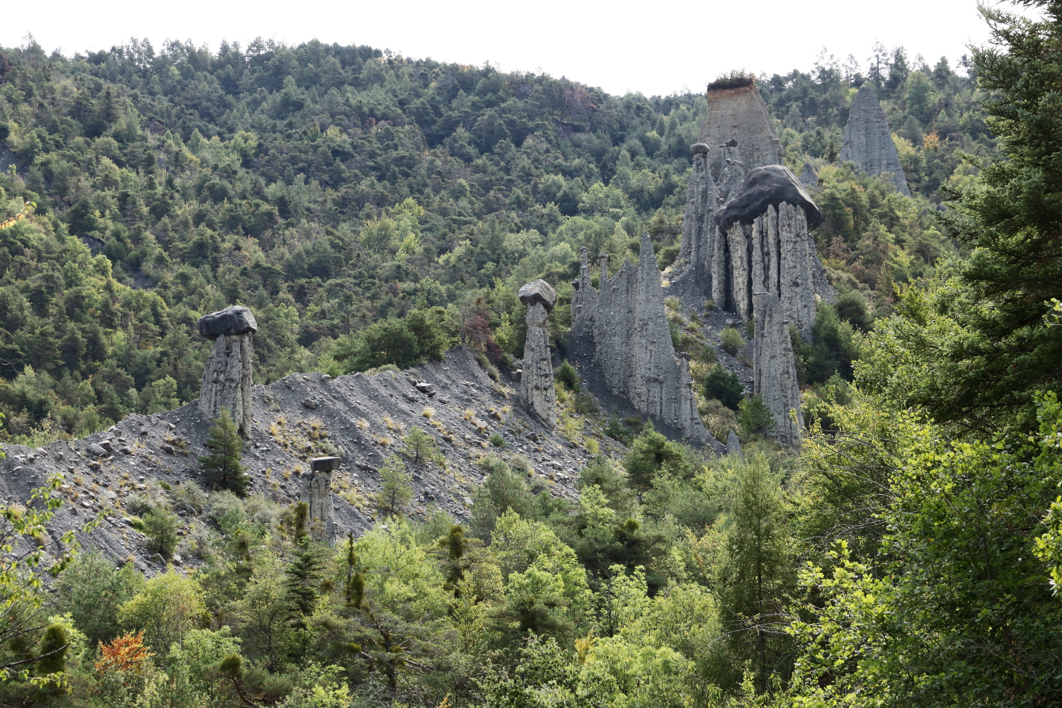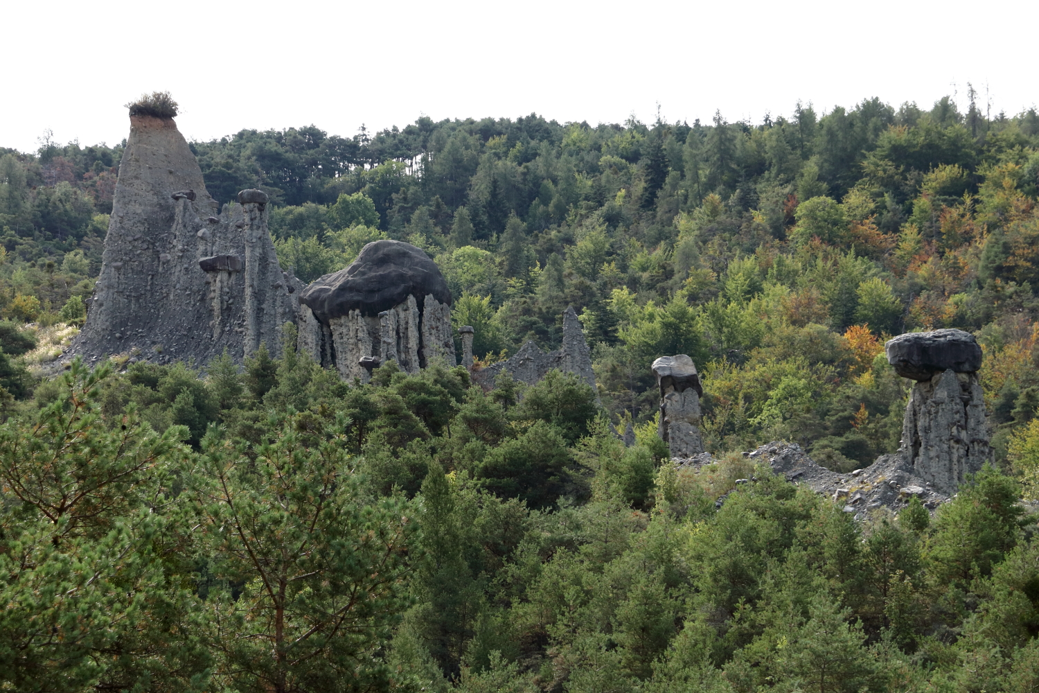 Le lendemain, de nouveaux arrêts pour découvrir des curiosités géologiques, la Roche Couchée et les Demoiselles Coiffées .