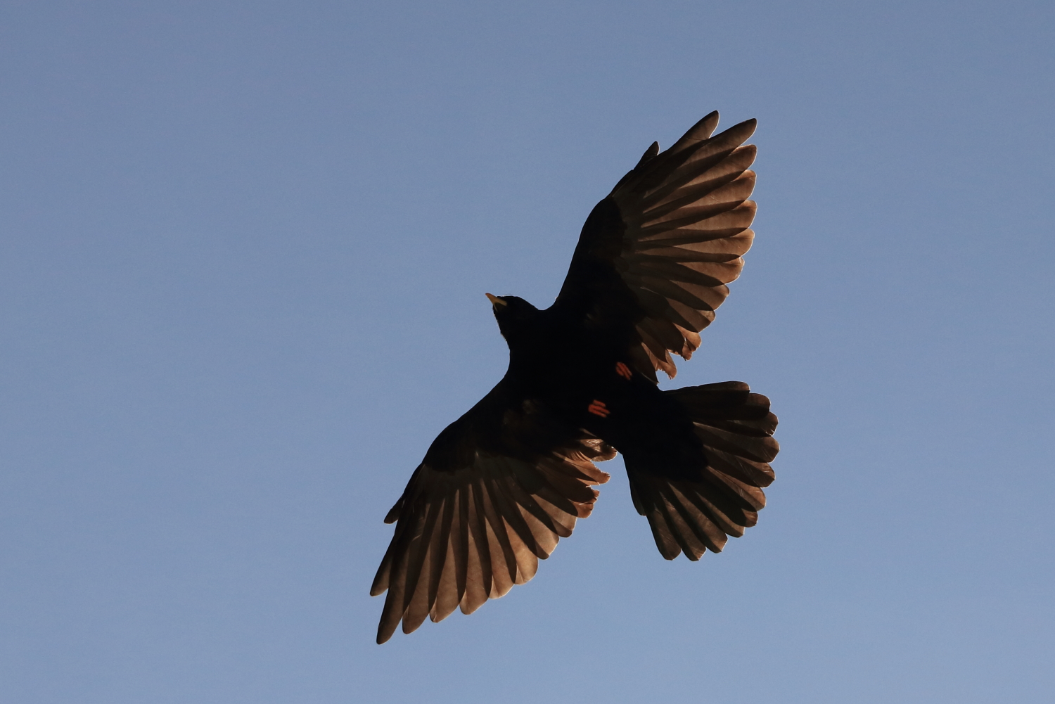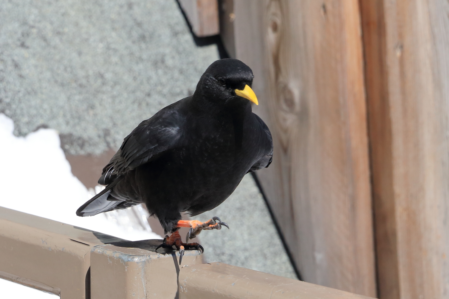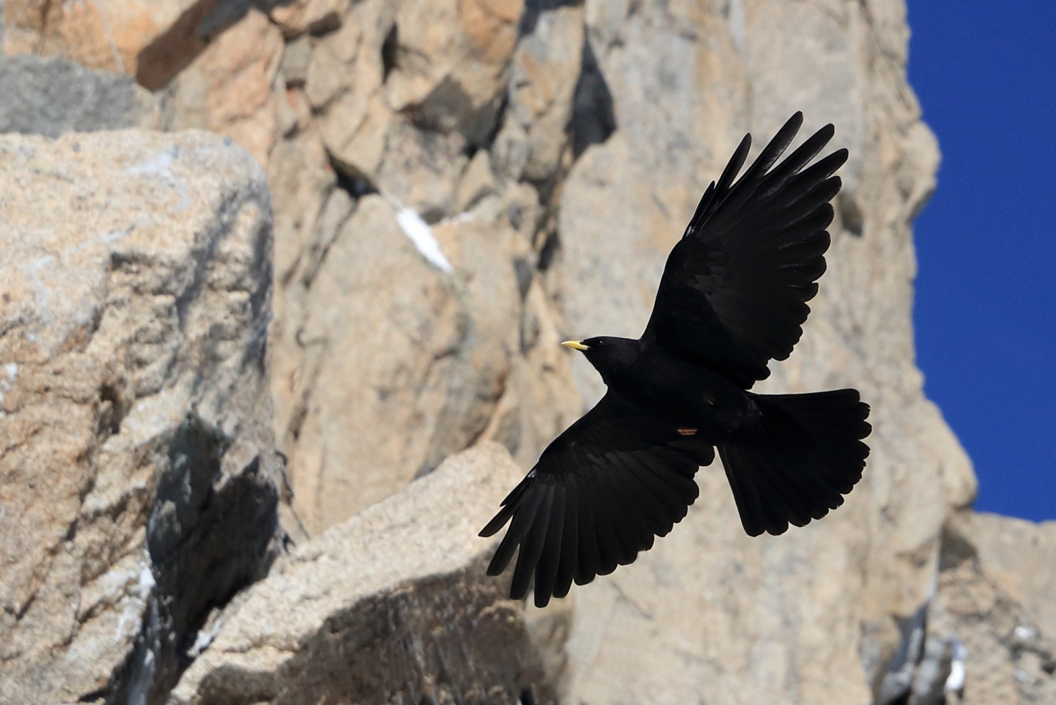 Une troisième avec un enthousiasme photographique inattendu… Étant de nature curieuse, le chocard à bec jaune convoite et partage les pique-niques des visiteurs. Avec une taille de 38 cm pour 75 cm d’envergure environ, il maîtrise parfaitement ce terrain de haute altitude.