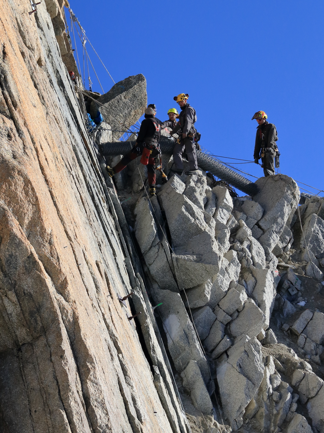 En regardant le travail des cordistes, un sursaut salvateur me fera prendre conscience du danger de la montagne en évitant de prendre un bloc rocheux sur la tête.