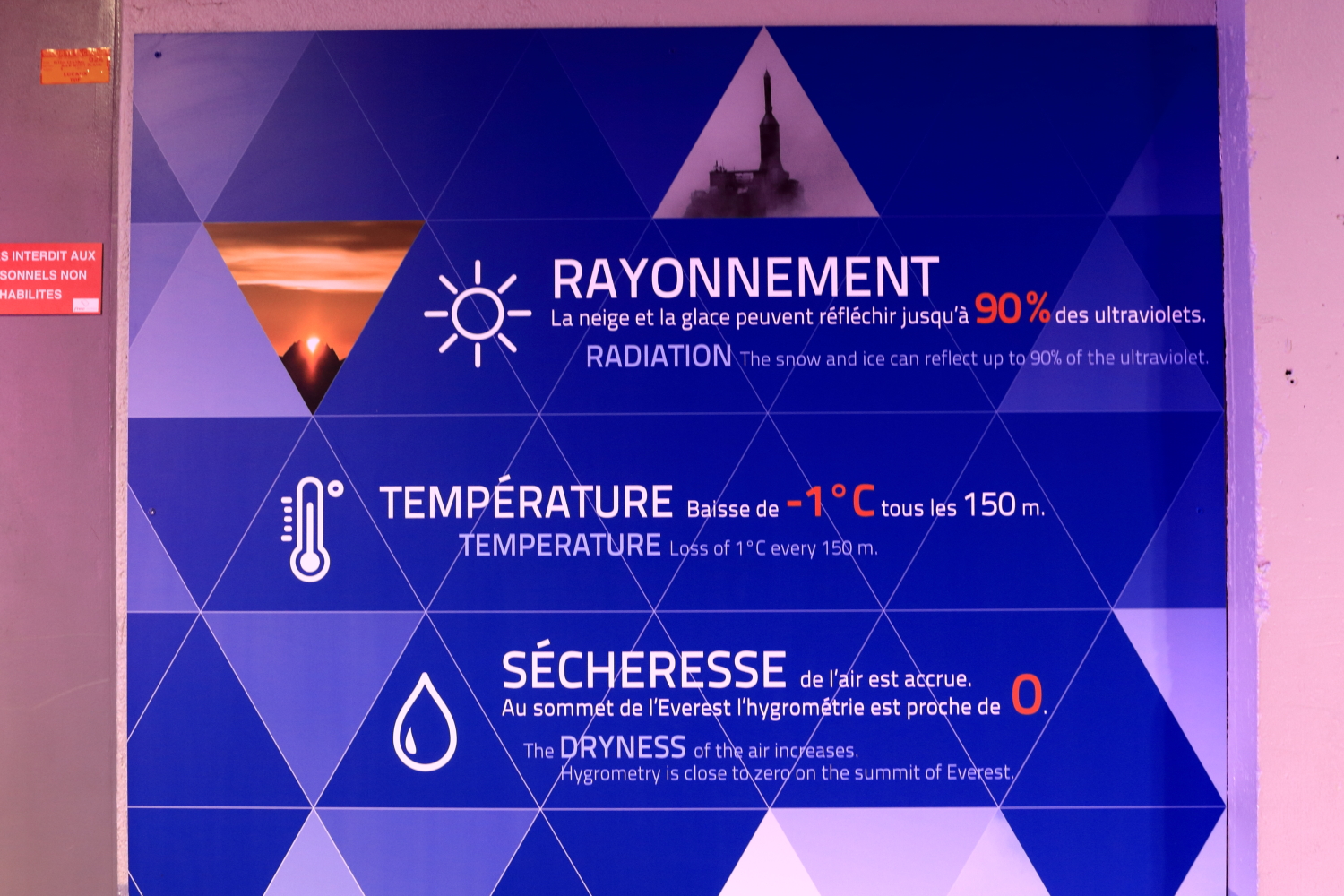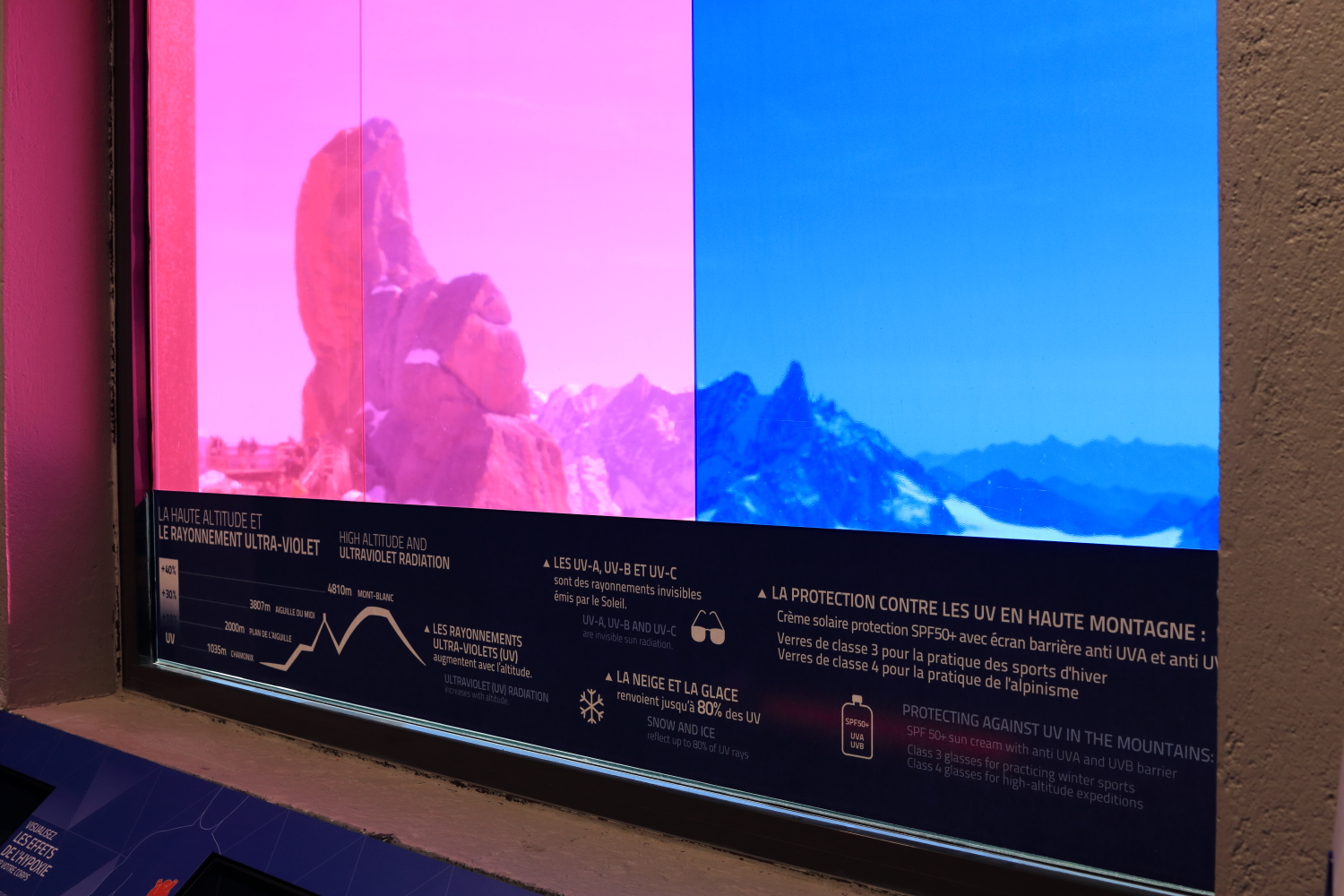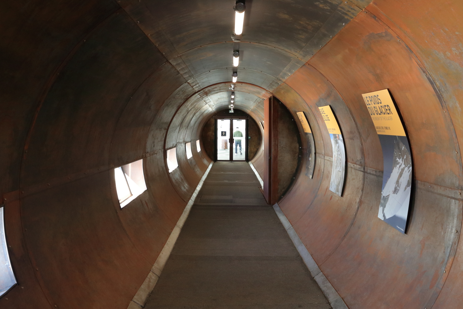 Tous les sujets à connaitre sur la montagne sont abordés. En pénétrant dans le tube, Il y a une atmosphère de science-fiction… L’Odyssée du Mont-Blanc